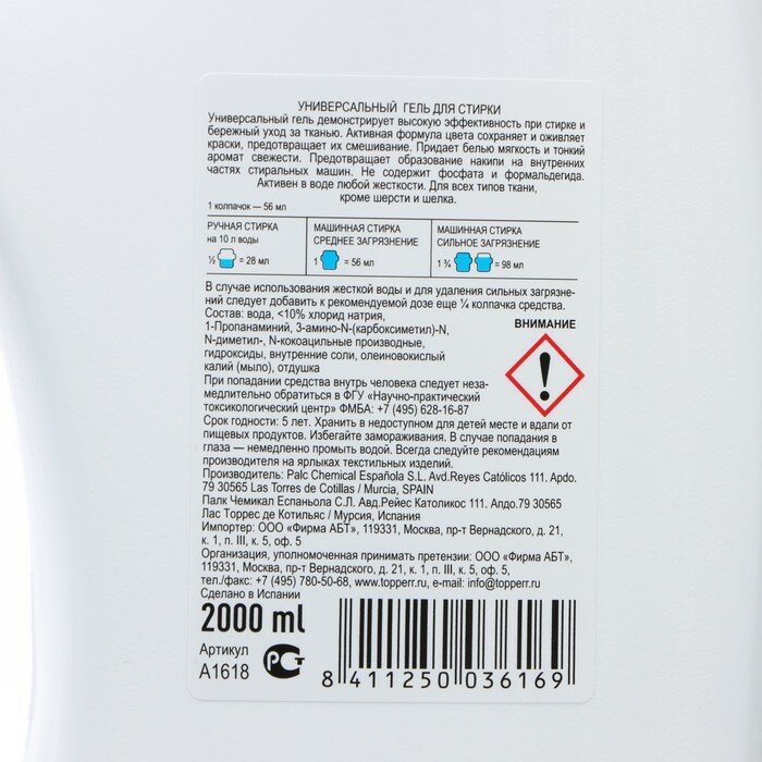 Topperr Гель-концентрат для стирки, Универсальный, 2000 мл, 1 шт., А1618