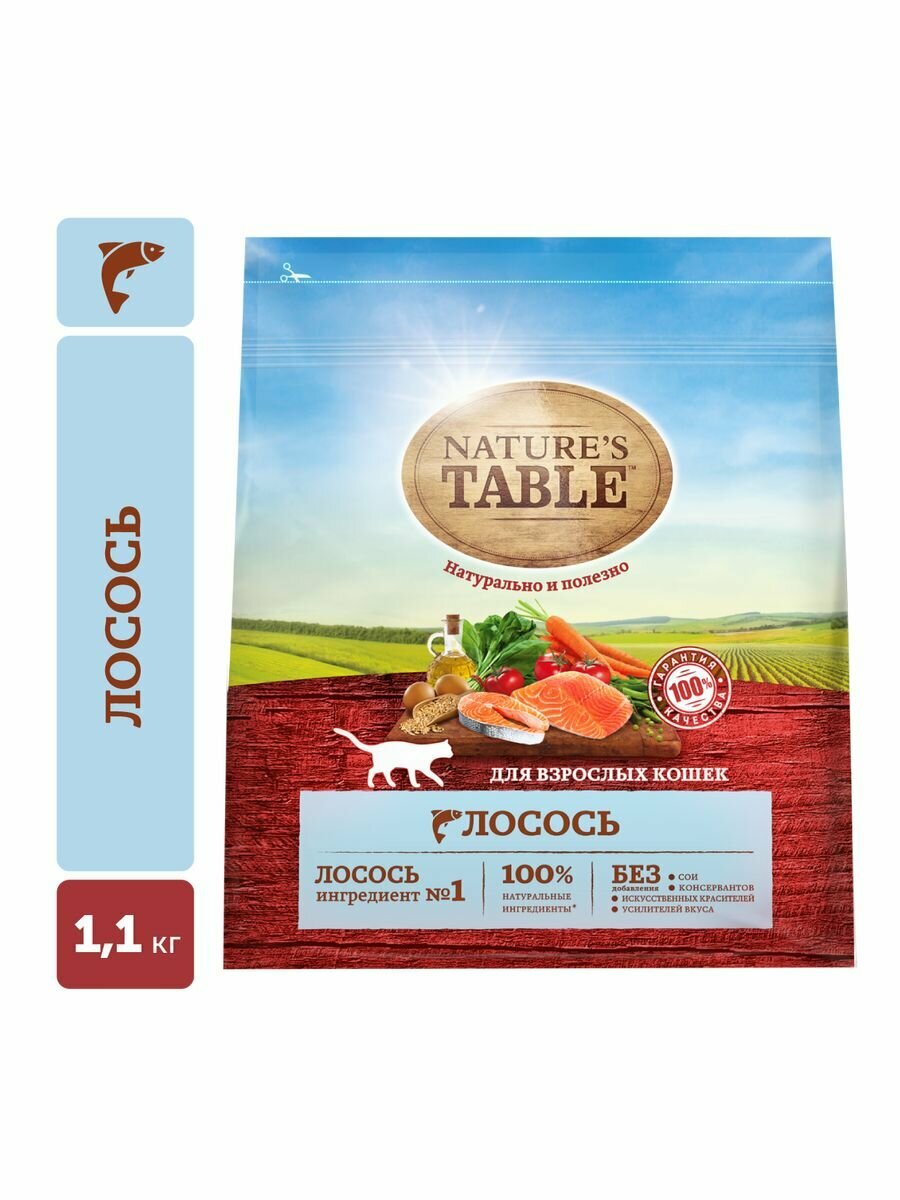 Купить Корм сухой Nature's Table Nature’s Table для взрослых кошек, Лосось, 1,1кг