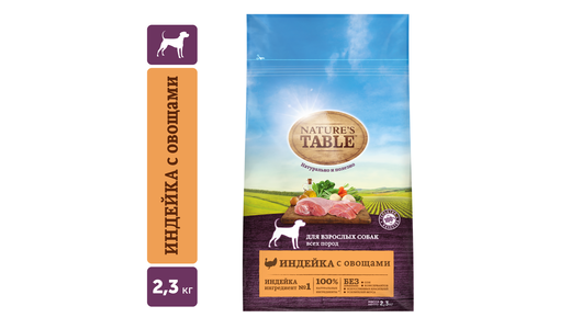 Корм для собак NATURE'S TABLE индейка с овощами сух. 2,3кг
