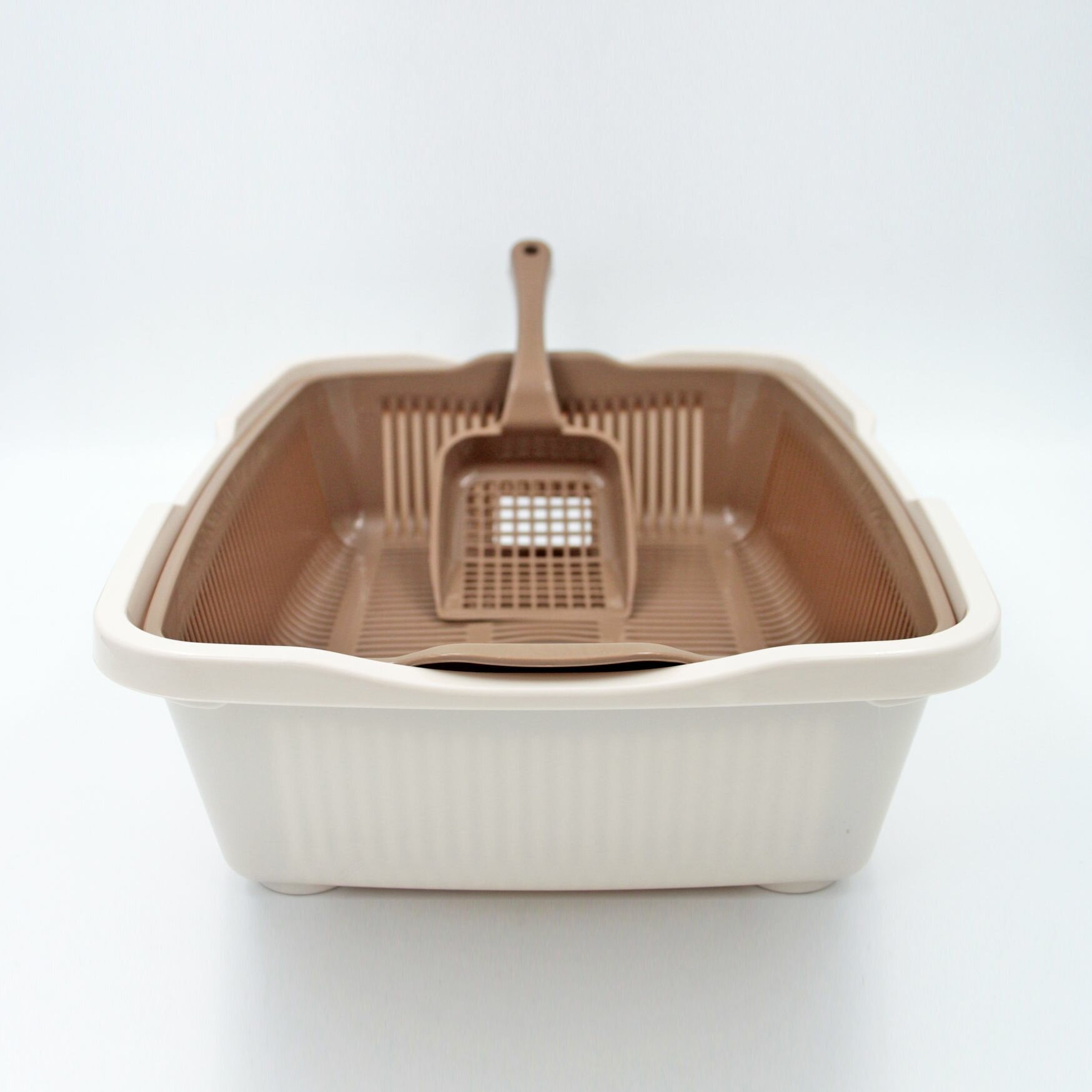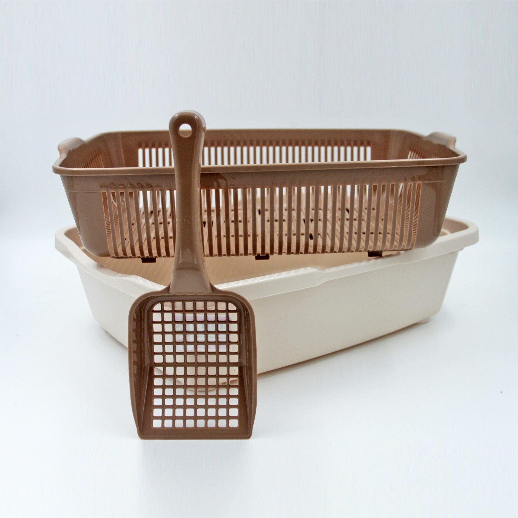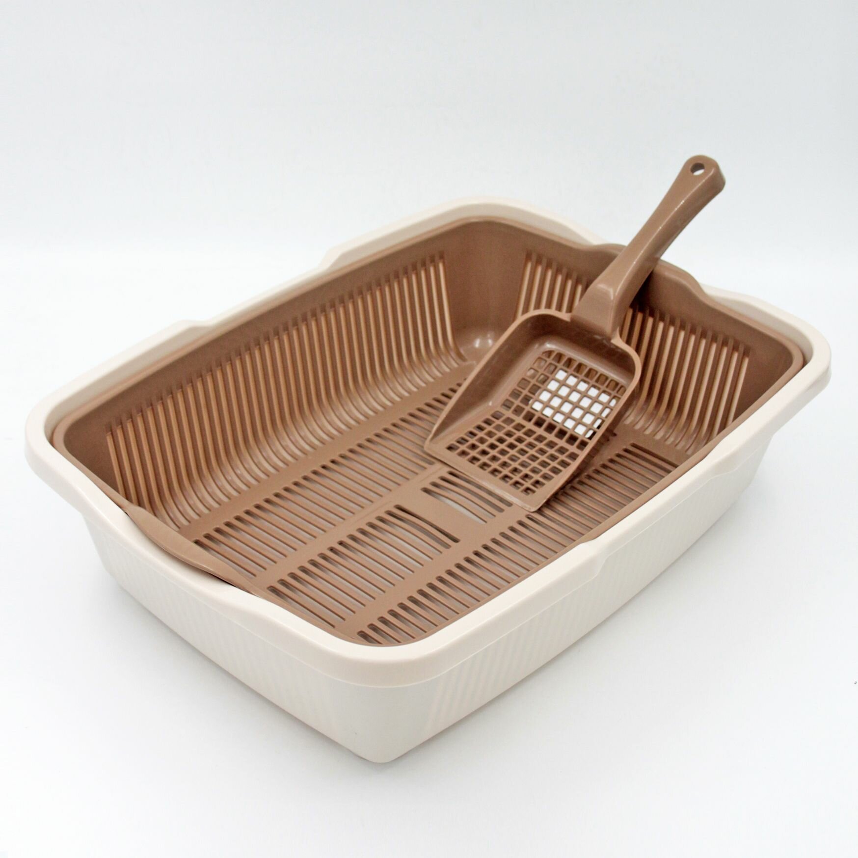 Купить Туалет для кошек с сеткой молочный-кофейный + совок в подарок