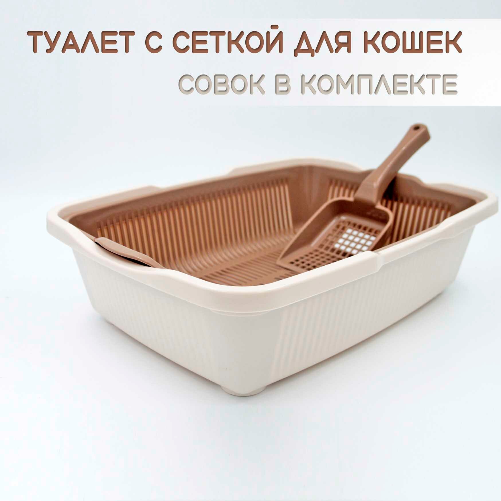 Туалет для кошек с сеткой молочный-кофейный + совок в подарок интересное: