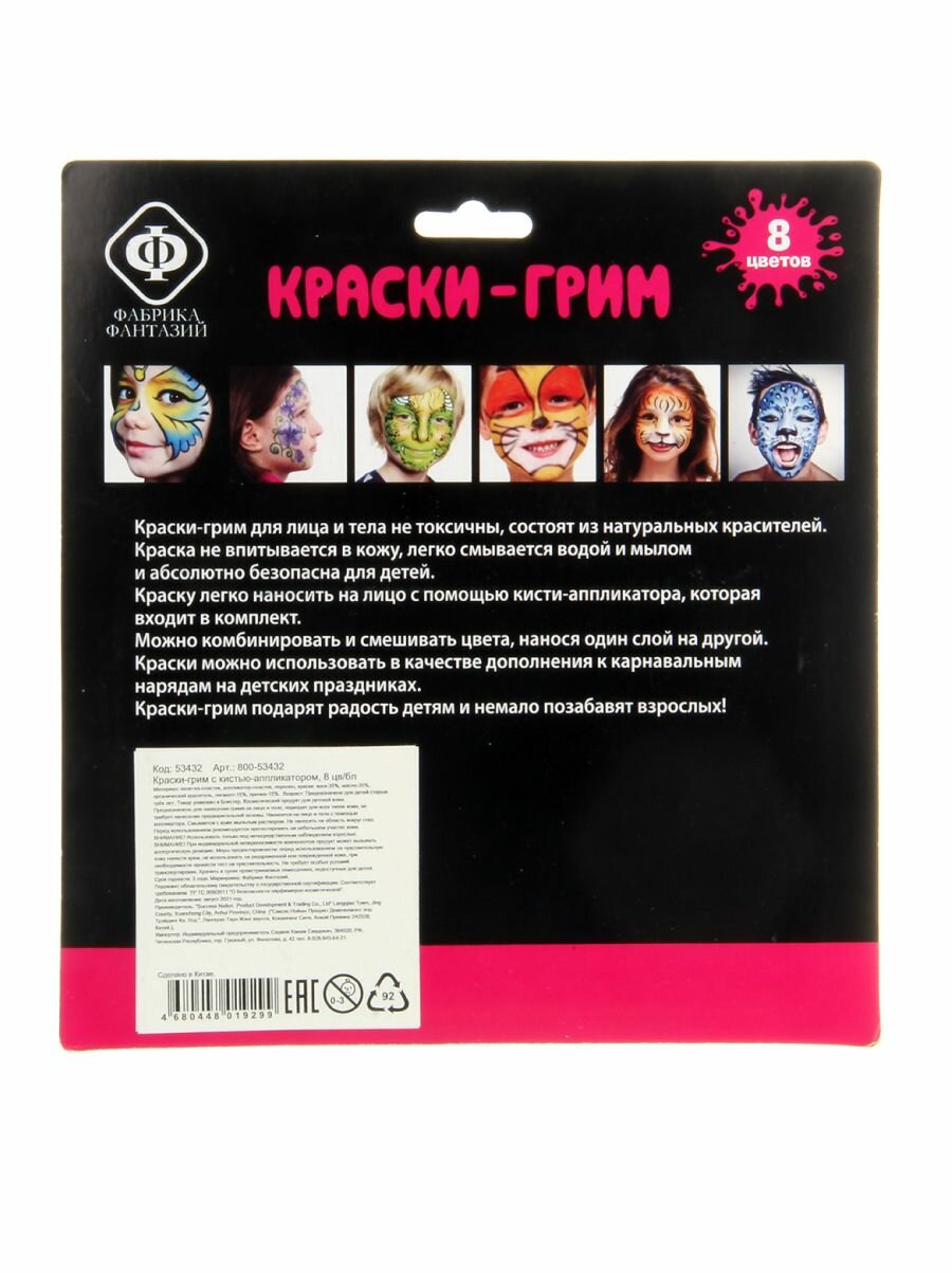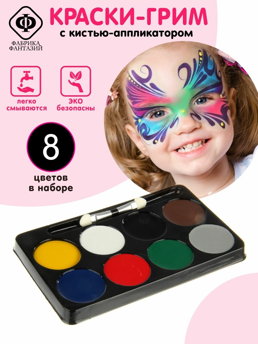 Купить Грим театральный для лица и тела, палитра 8 цветов, Фабрика Фантазий / Аквагрим для детей, набор краски для грима с кистью-аппликатором / Halloween, хэлоуин