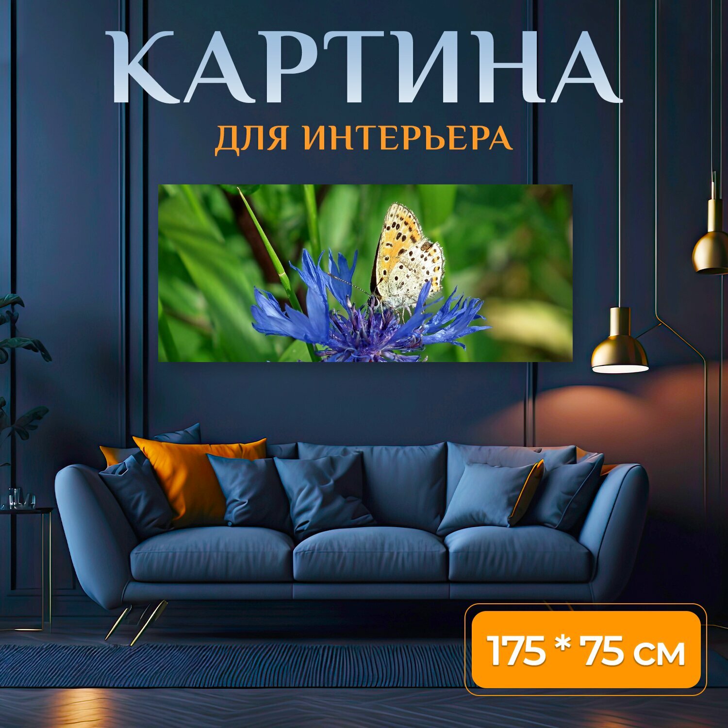 Купить Картина на холсте "Бабочка, насекомое, цветок" на подрамнике 175х75 см. для интерьера