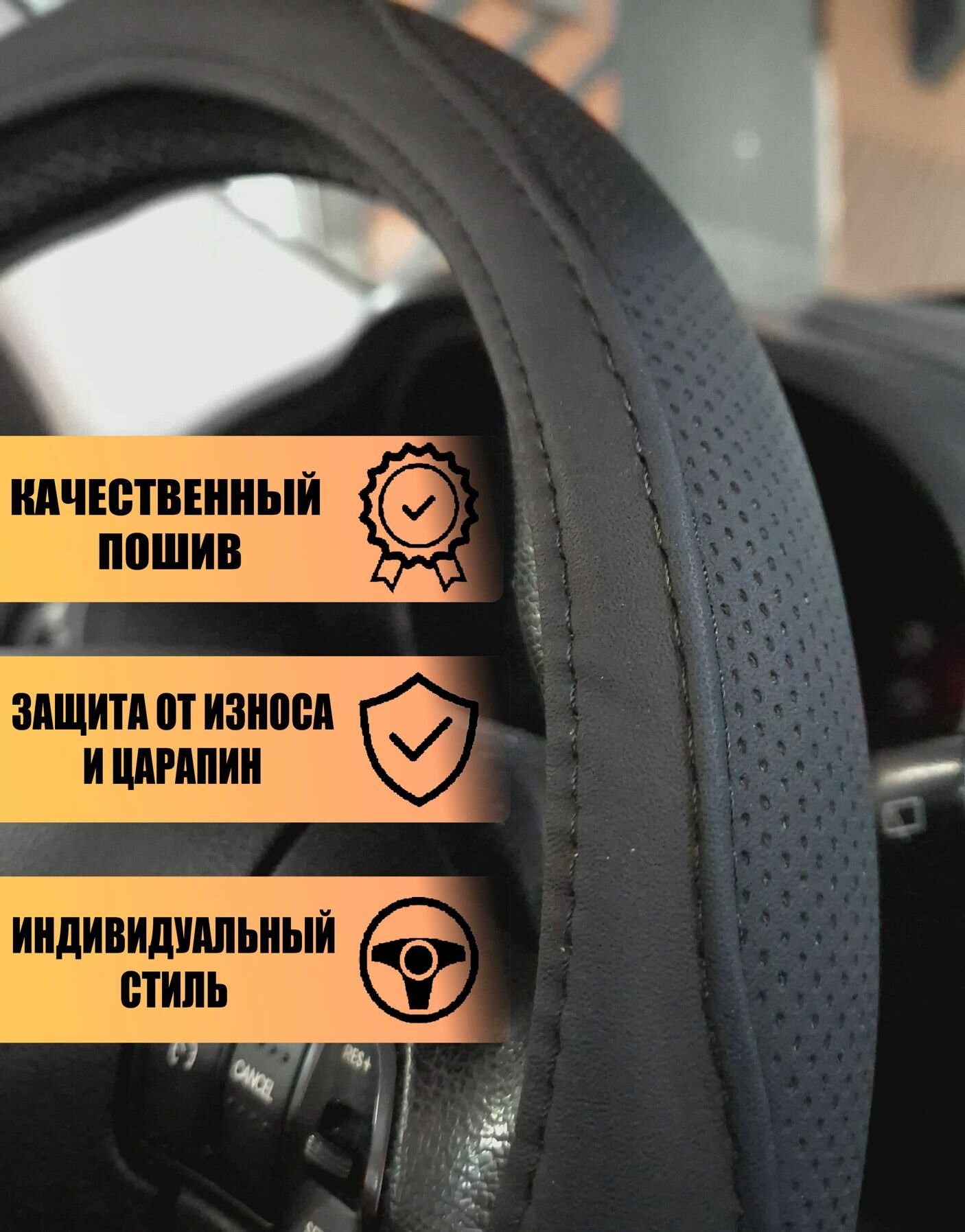 Оплетка, чехол (накидка) на руль Пежо 107 (2012 - 2014) хэтчбек 5 дверей / Peugeot 107, экокожа, Черный интересное: