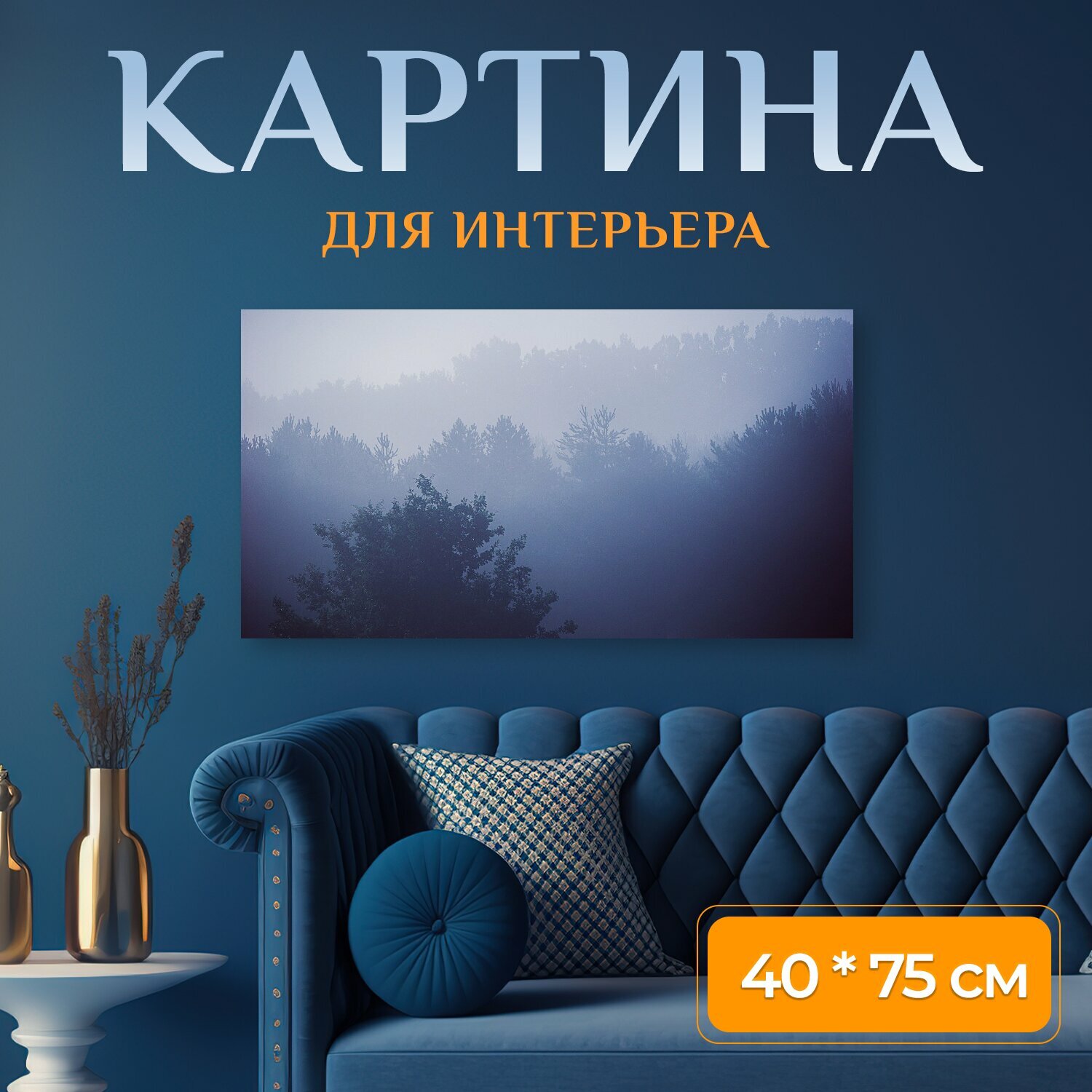 Картина на холсте "Синий, деревья, лес" на подрамнике 75х40 см. для интерьера интересное: