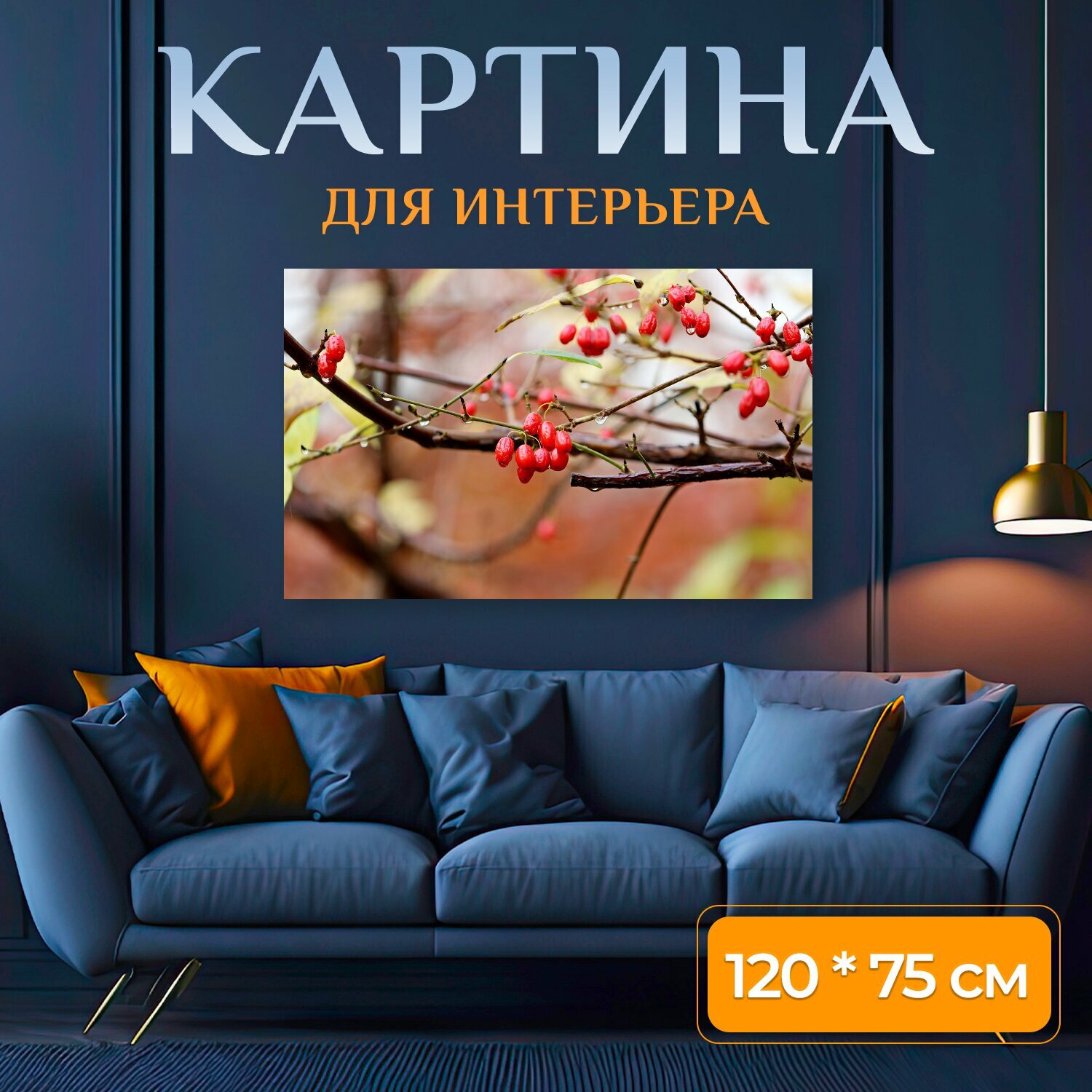 Картина на холсте "Кукурузное молоко, плод кукурузы, кизил" на подрамнике 120х75 см. для интерьера интересное: