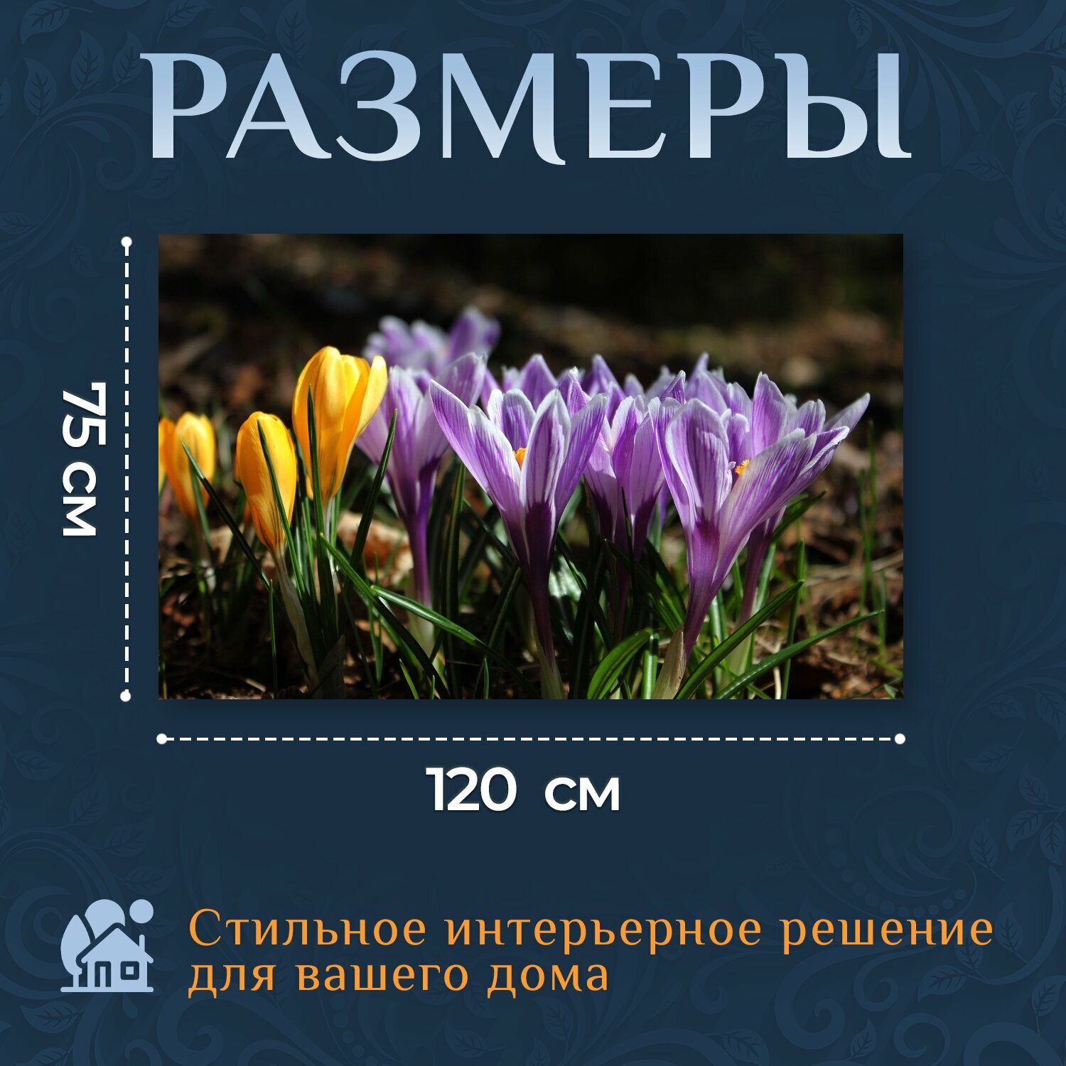 Картина на холсте "Крокус, цветы, природа" на подрамнике 120х75 см. для интерьера интересное: