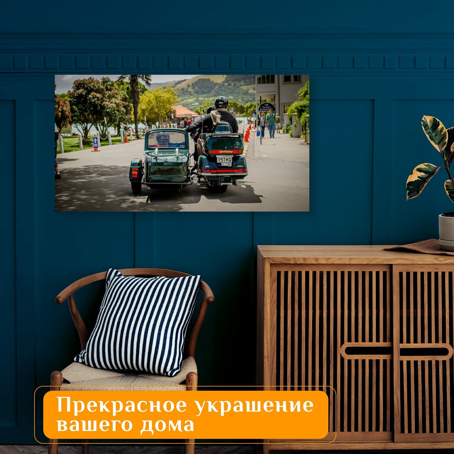Картина на холсте "Коляска, мото, улица" на подрамнике 75х40 см. для интерьера интересное: