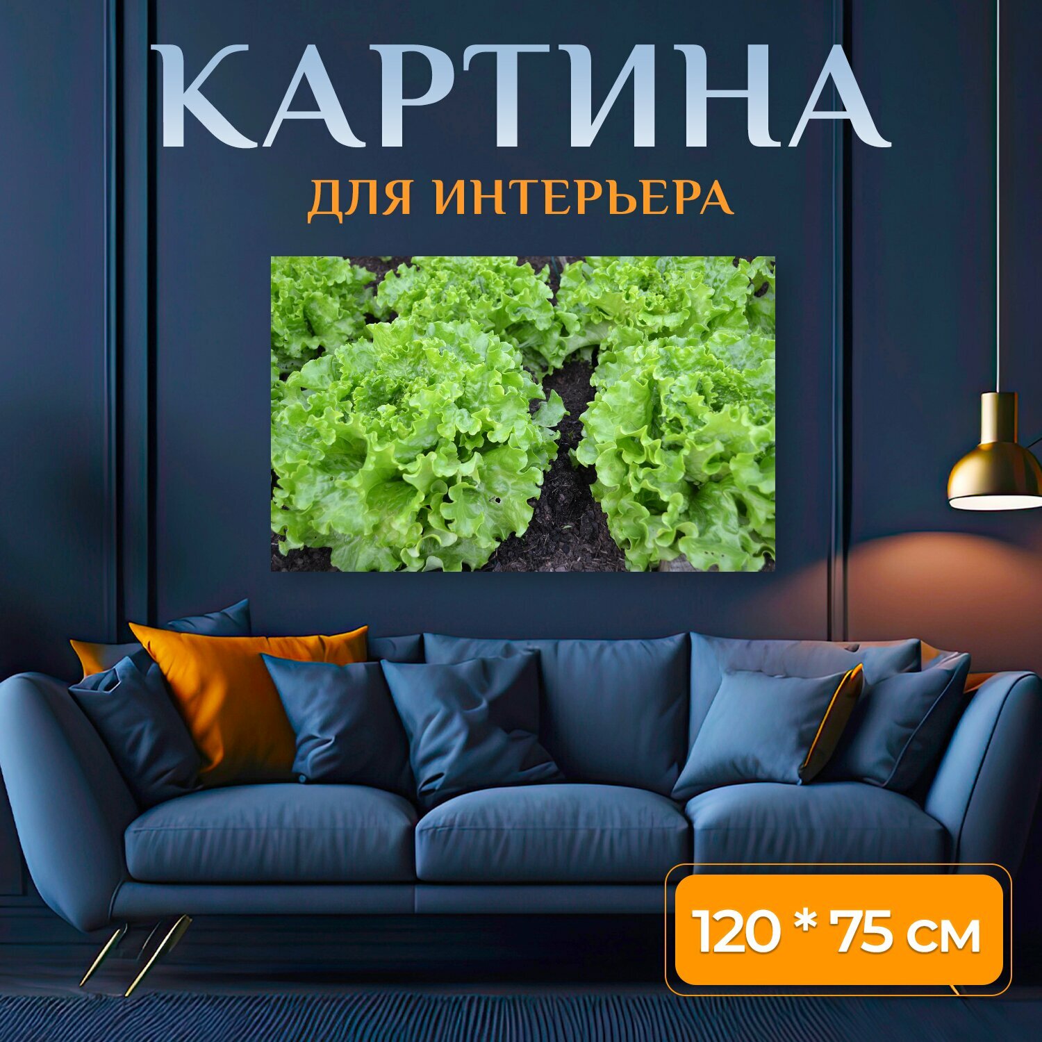 Картина на холсте "Зеленый салат, латук, батавия" на подрамнике 120х75 см. для интерьера интересное: