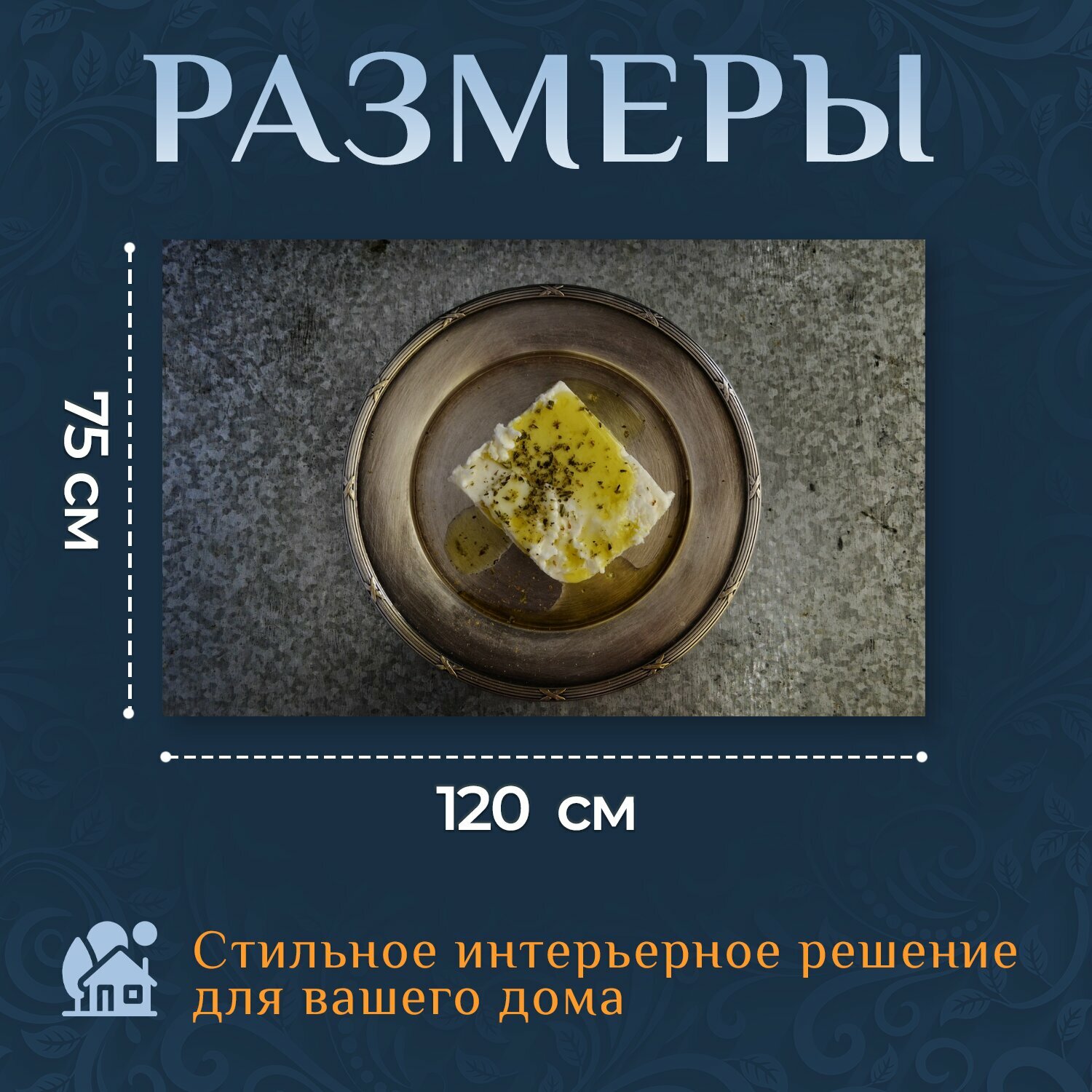 Купить Картина на холсте "Фета, сыр, оливковое масло" на подрамнике 120х75 см. для интерьера