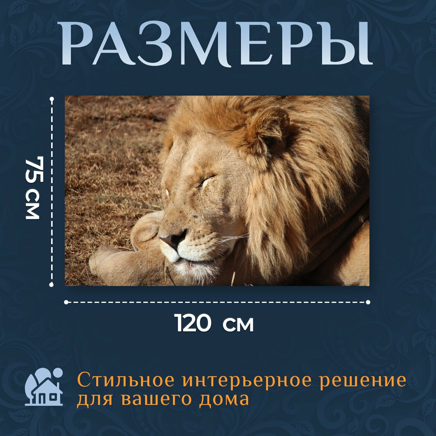 Картина на холсте "Лев, спать, дикая природа" на подрамнике 120х75 см. для интерьера интересное: