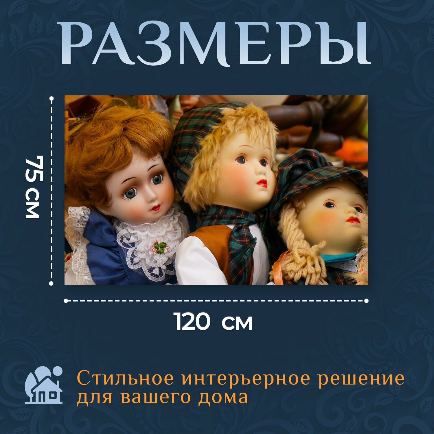 Картина на холсте "Куклы, персонажи, лица" на подрамнике 120х75 см. для интерьера интересное: