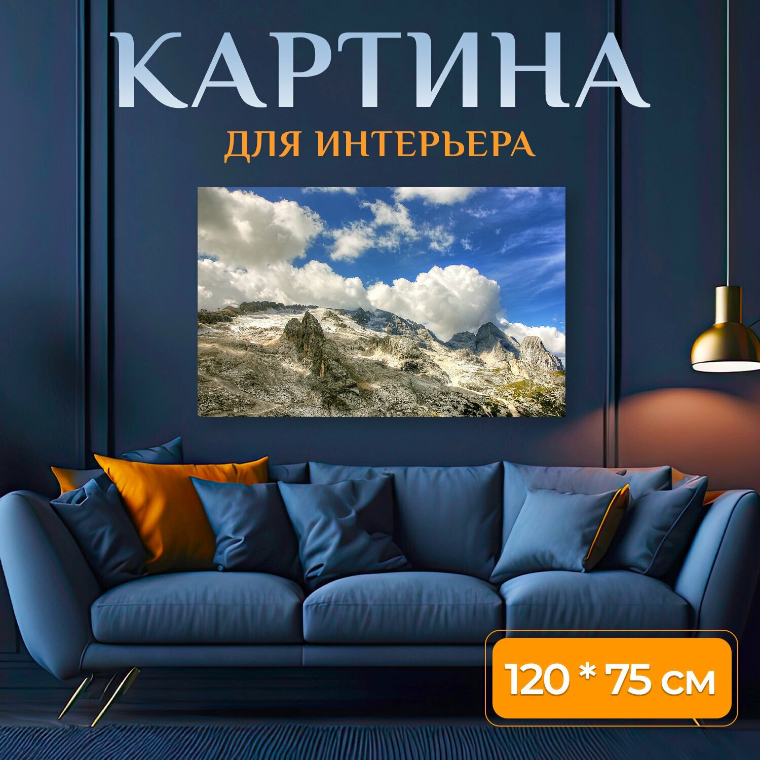 Картина на холсте "Мармолада, доломиты, италия" на подрамнике 120х75 см. для интерьера интересное:
