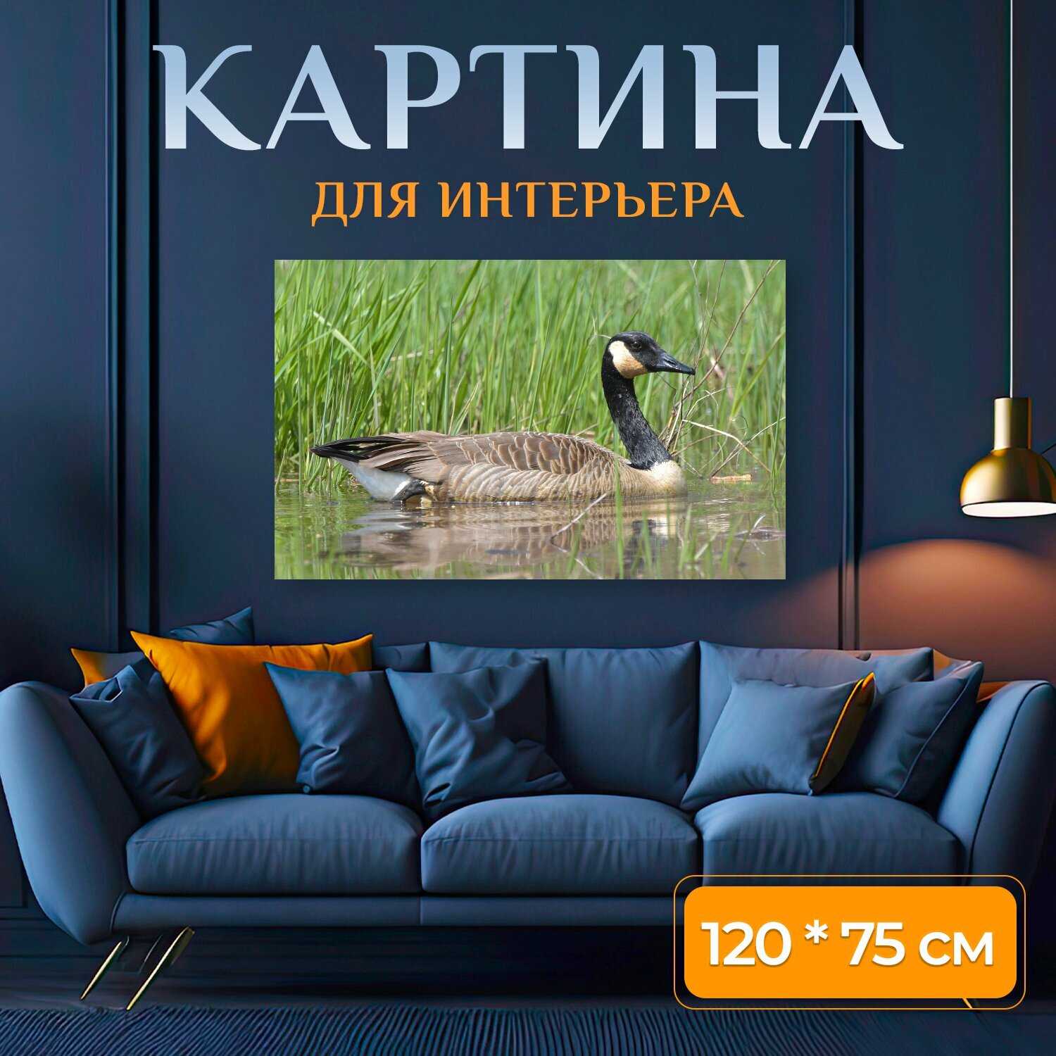 Картина на холсте "Канадский гусь, птица, болото" на подрамнике 120х75 см. для интерьера интересное:
