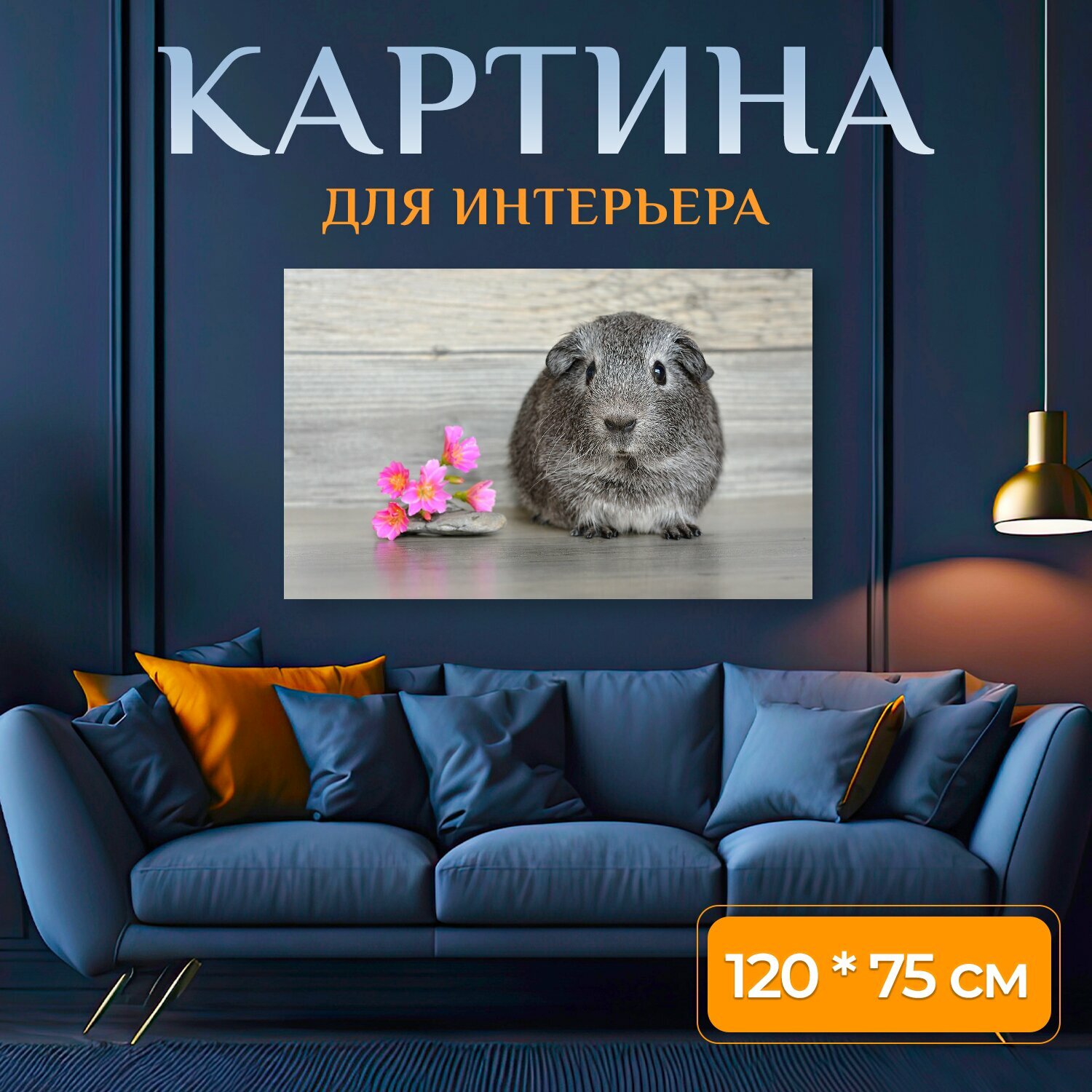 Картина на холсте "Морская свинка, гладкие волосы, детеныш" на подрамнике 120х75 см. для интерьера интересное: