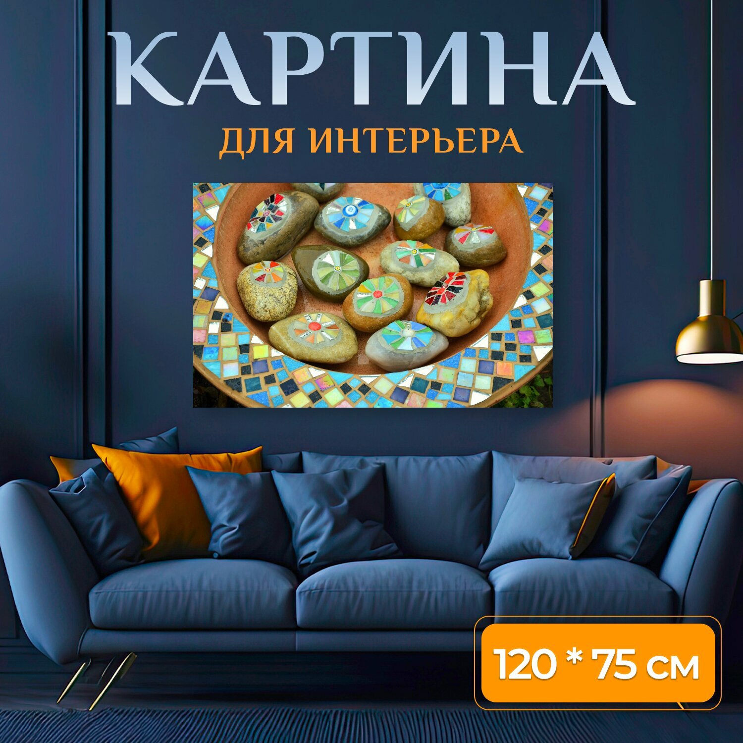 Картина на холсте "Камни, мозаика, шаблон" на подрамнике 120х75 см. для интерьера интересное: