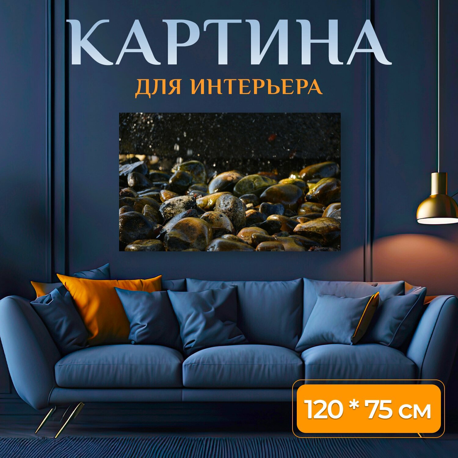 Картина на холсте "Камни, мокрый, мокрые камни" на подрамнике 120х75 см. для интерьера интересное: