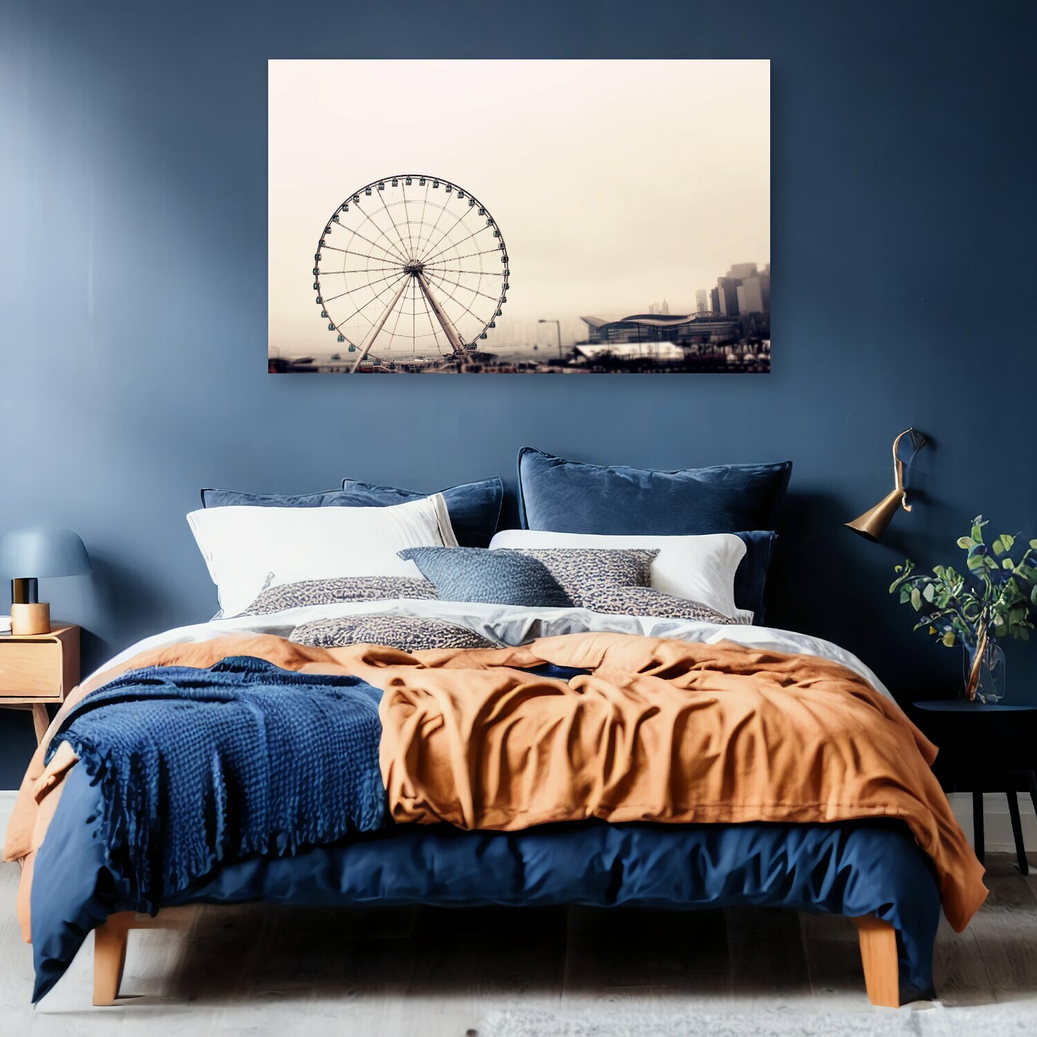 Картина на холсте "Гонконг, колесо обозрения, центральный пирс" на подрамнике 120х75 см. для интерьера интересное: