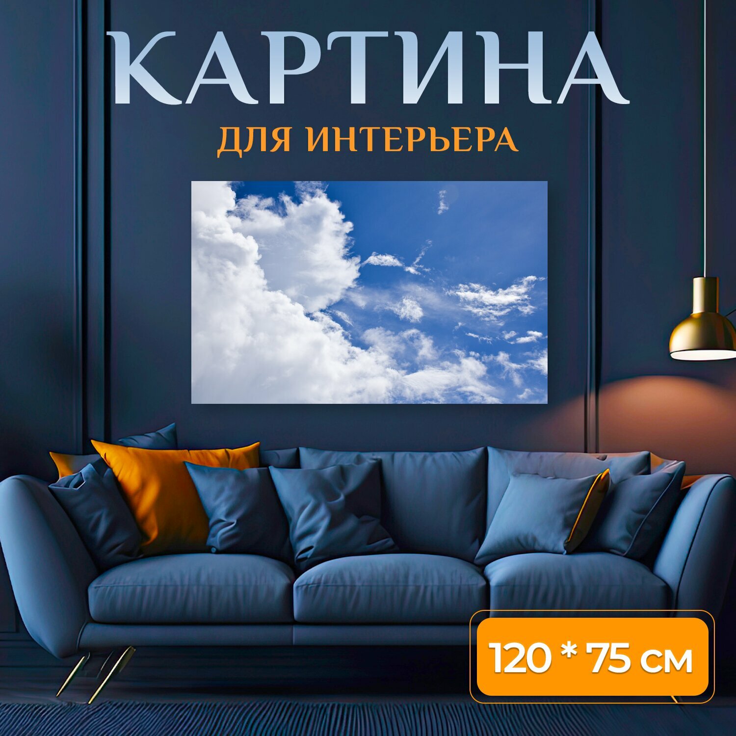 Купить Картина на холсте "Небо, синий, облако" на подрамнике 120х75 см. для интерьера