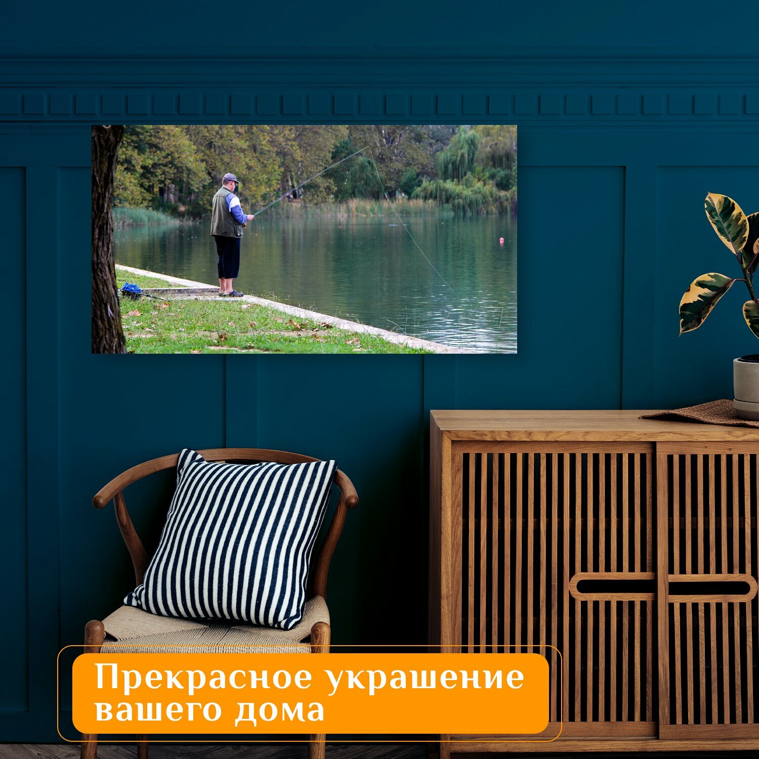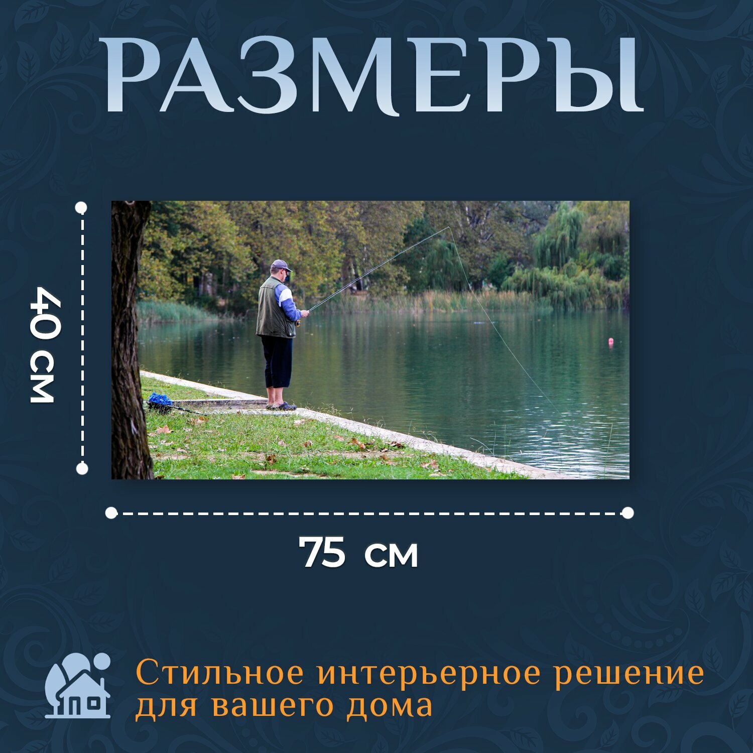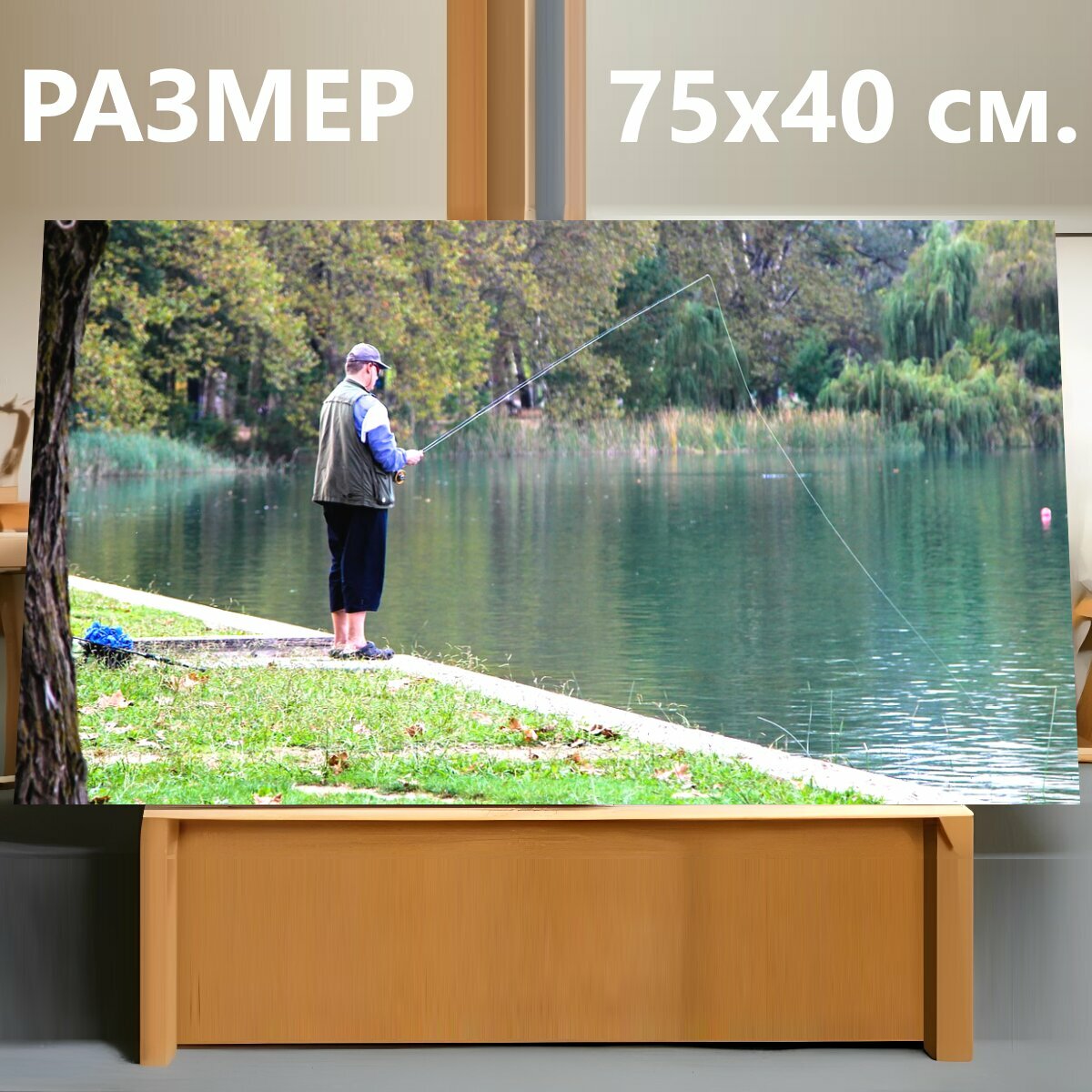 Картина на холсте "Рыбак, озеро, вода" на подрамнике 75х40 см. для интерьера интересное: