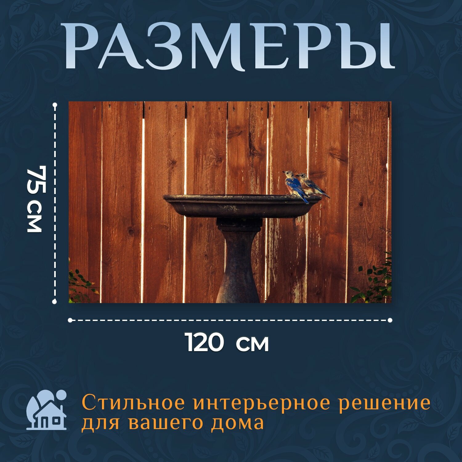 Картина на холсте "Восточные синие птицы, малолетний, поилка для птиц" на подрамнике 120х75 см. для интерьера интересное: