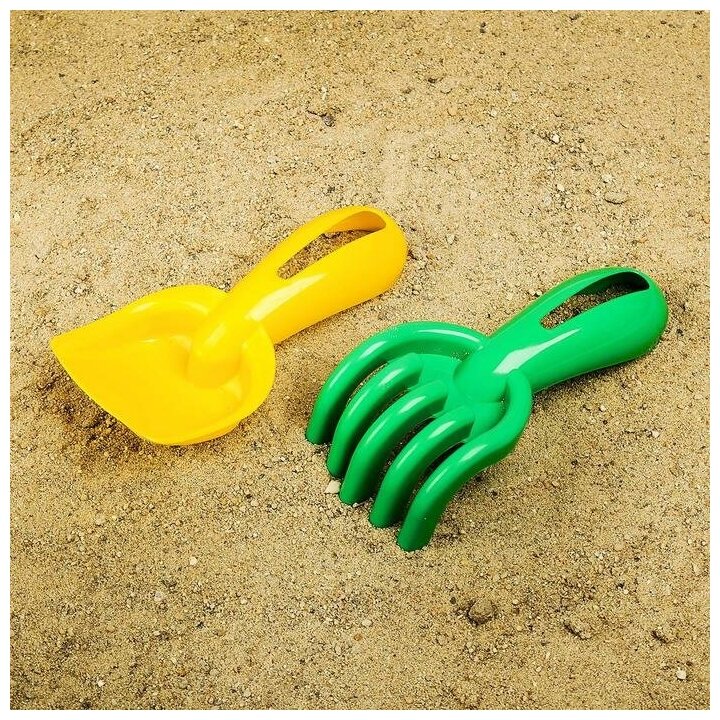 Купить Набор для песочницы, совок и грабли с отверстием, цвета микс, 5 штук