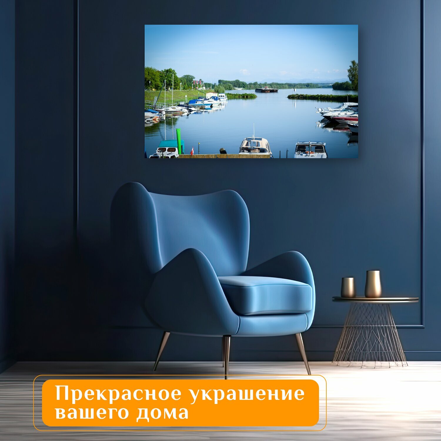 Картина на холсте "Лодки, вода, порт" на подрамнике 120х75 см. для интерьера интересное: