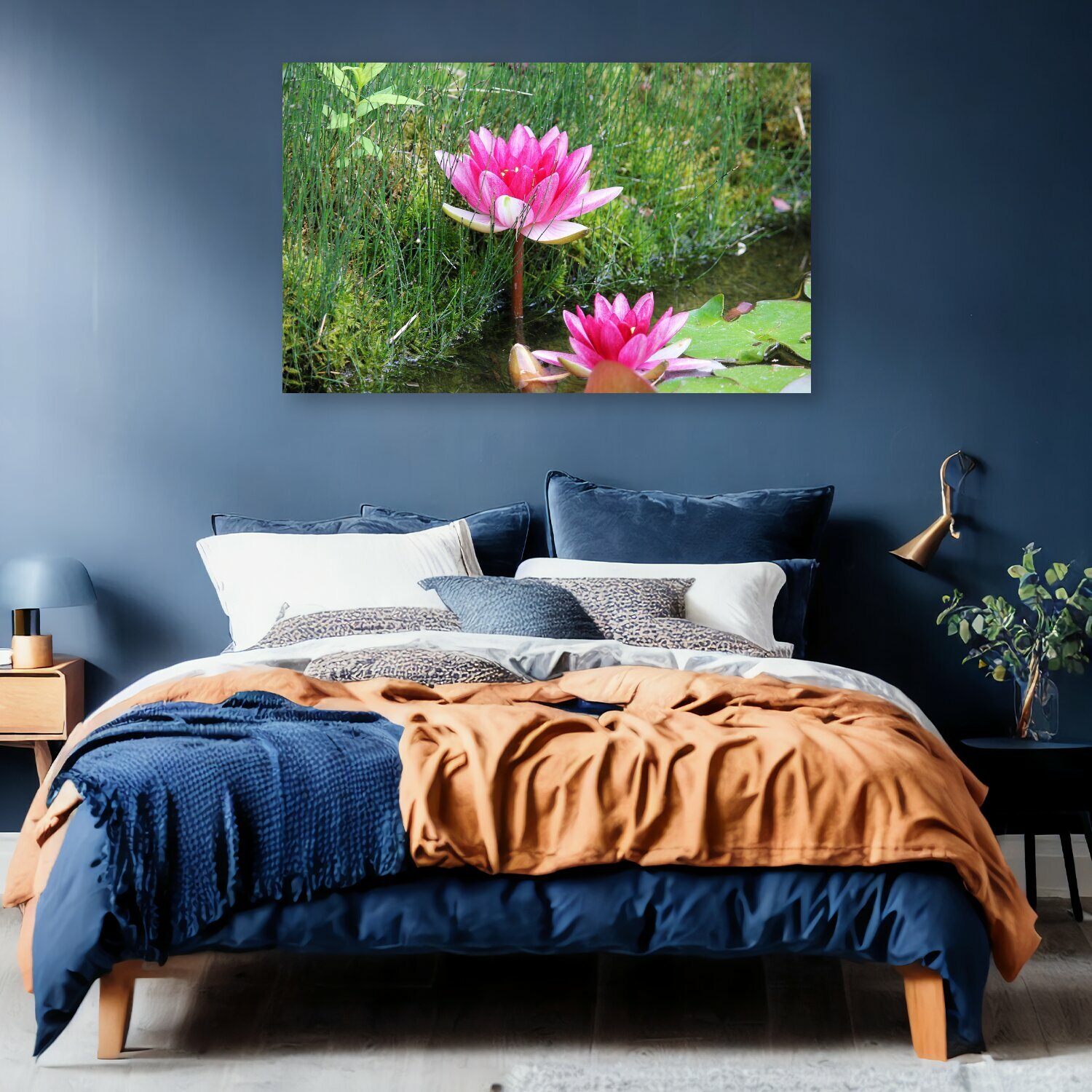 Картина на холсте "Водяная лилия, розовый, водное растение" на подрамнике 120х75 см. для интерьера интересное: