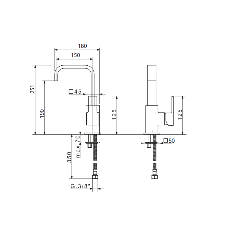 Migliore KVANT Смеситель для раковины монокомандный плоский излив (ручка управления сбоку), хром