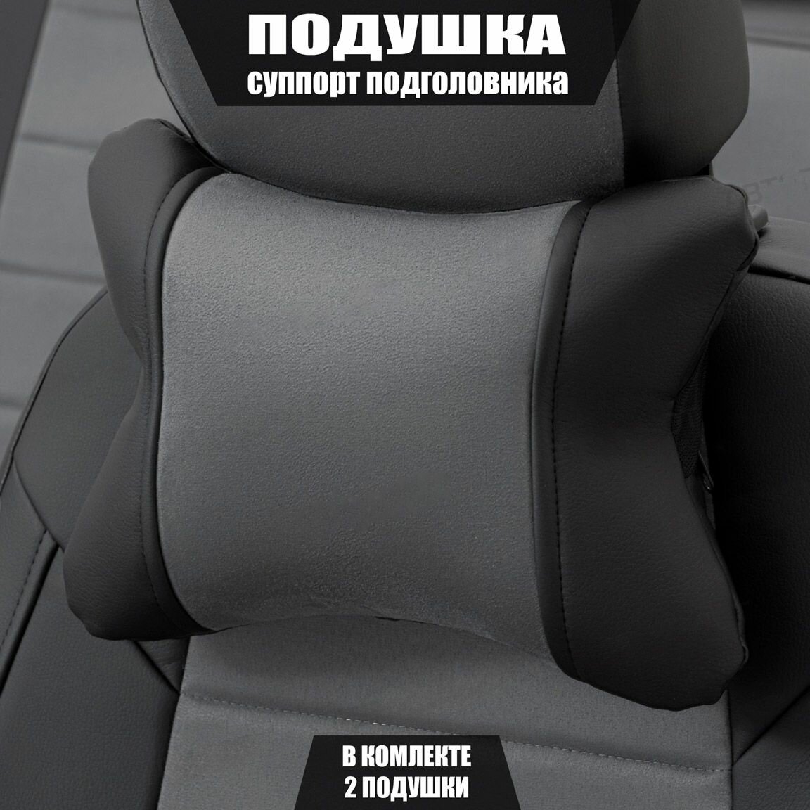 Купить Подушки под шею (суппорт подголовника) для Мерседес-Бенц гл-класс амг (2012 - 2016) внедорожник 5 дверей / Mercedes-Benz GL-Class AMG, Алькантара, 2 подушки, Черный и серый