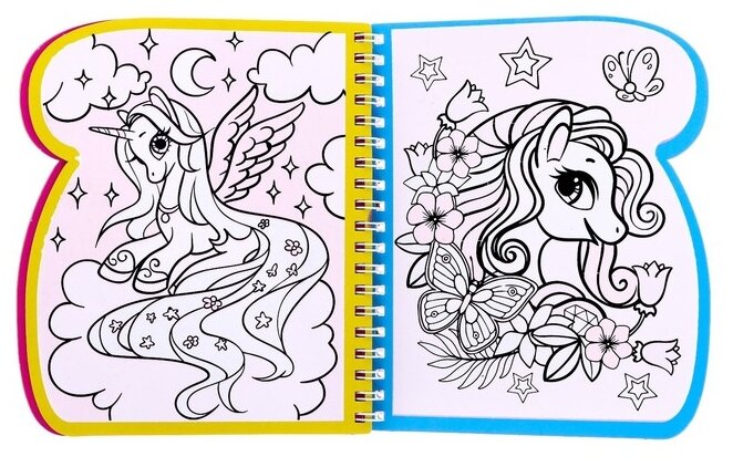 Книжка для рисования водой "Волшебные пони" многоразовая, с маркером, буква-ленд