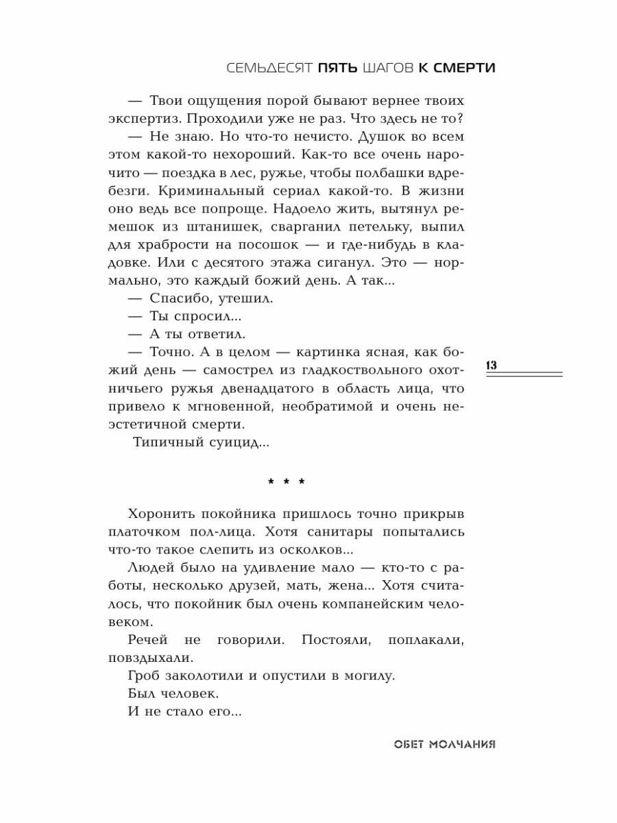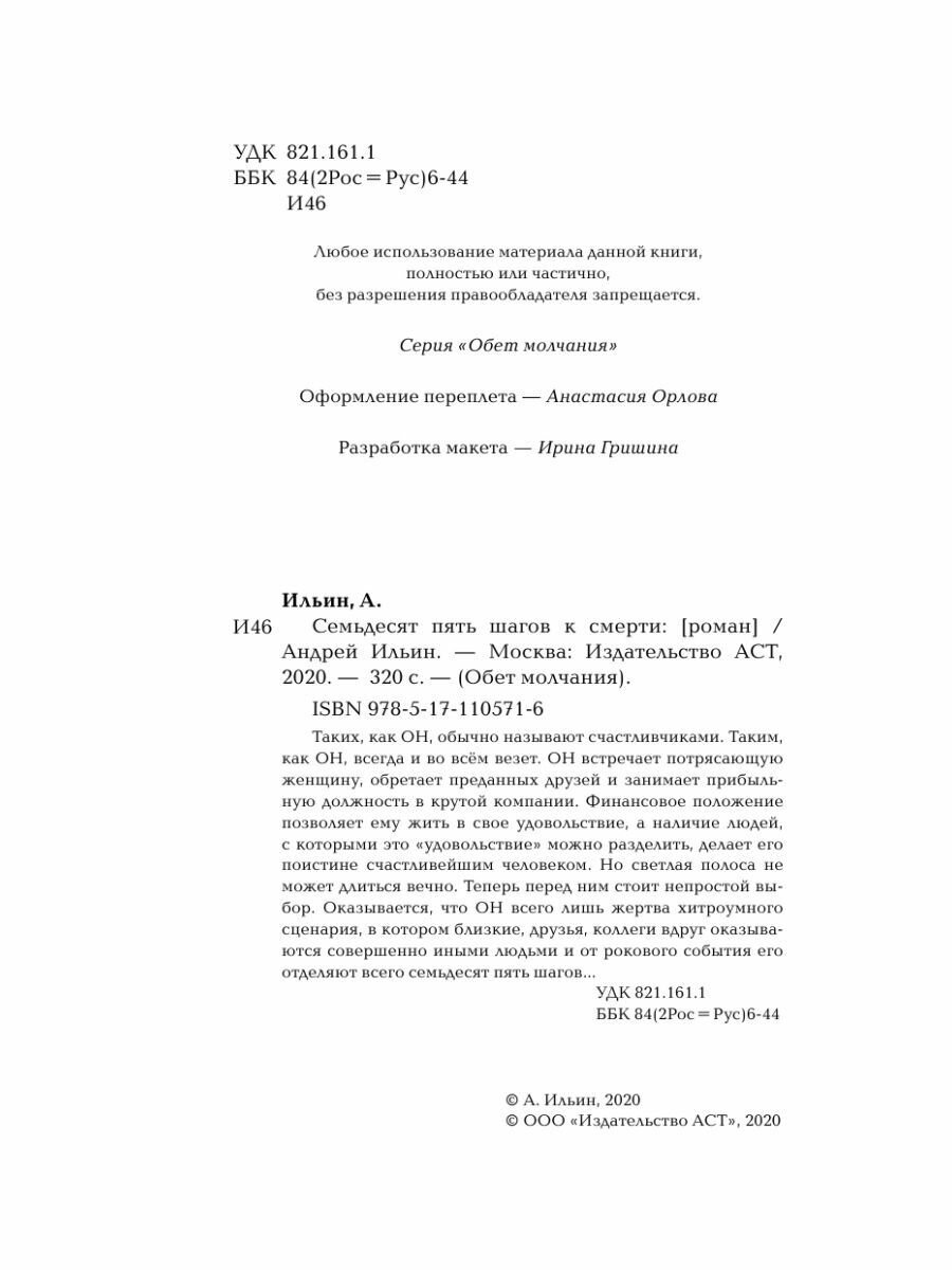 Ниже Вы можете прочитать отзывы на Семьдесят пять шагов к смерти, ознакомится с подробными характеристиками, посмотреть интересные обзоры и фотографии на Семьдесят пять шагов к смерти.