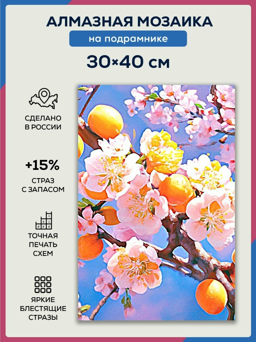 Алмазная мозаика 30x40 Цветущее дерево на подрамнике интересное: