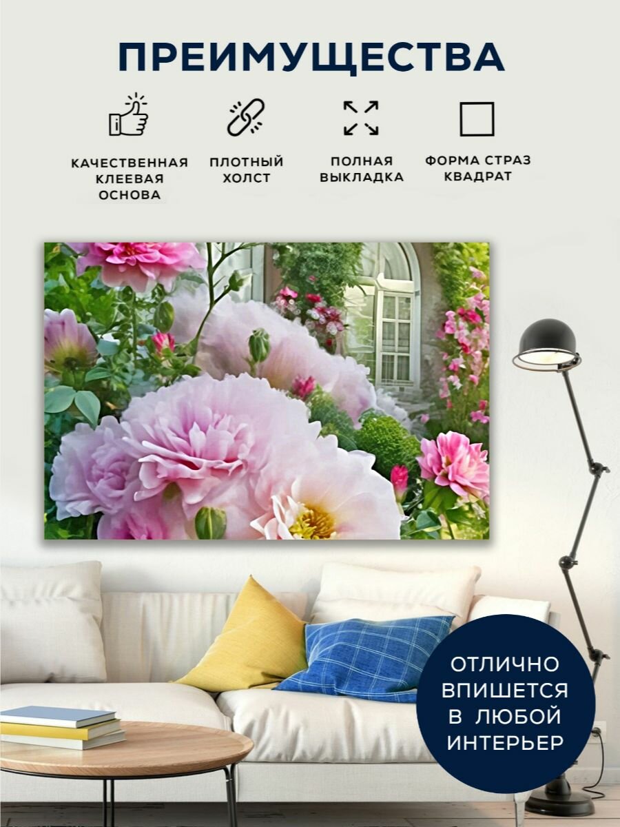Алмазная мозаика 60x80 Цветы в саду на подрамнике интересное: