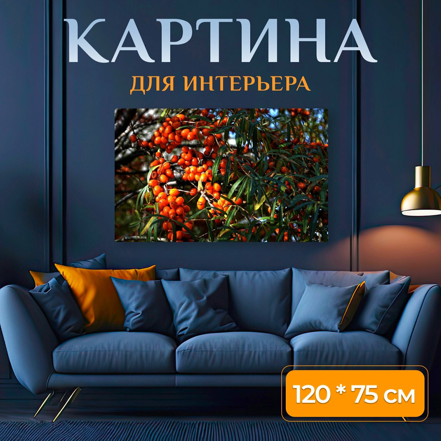 Картина на холсте "Облепиха, природа, плоды деревьев" на подрамнике 120х75 см. для интерьера интересное: