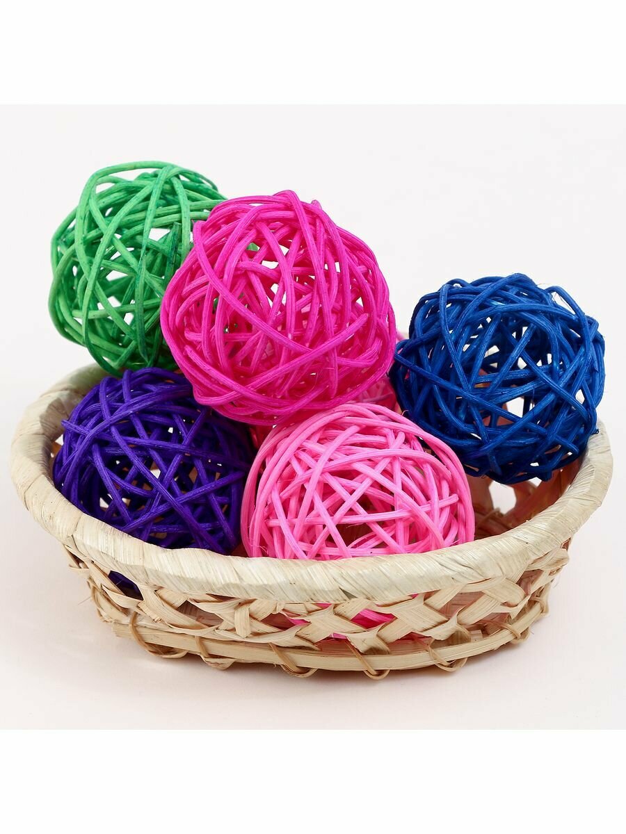 Шар декоративный из лозы, набор 6 шт, размер 1 шт 5 см, цвет микс