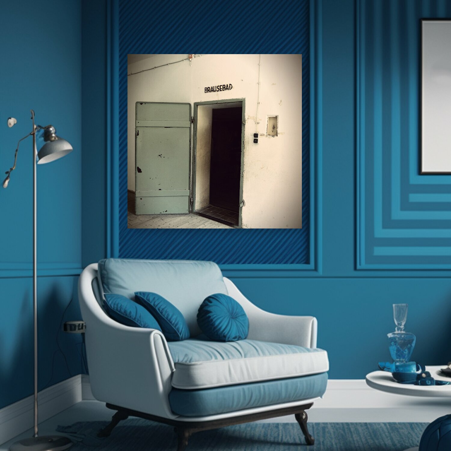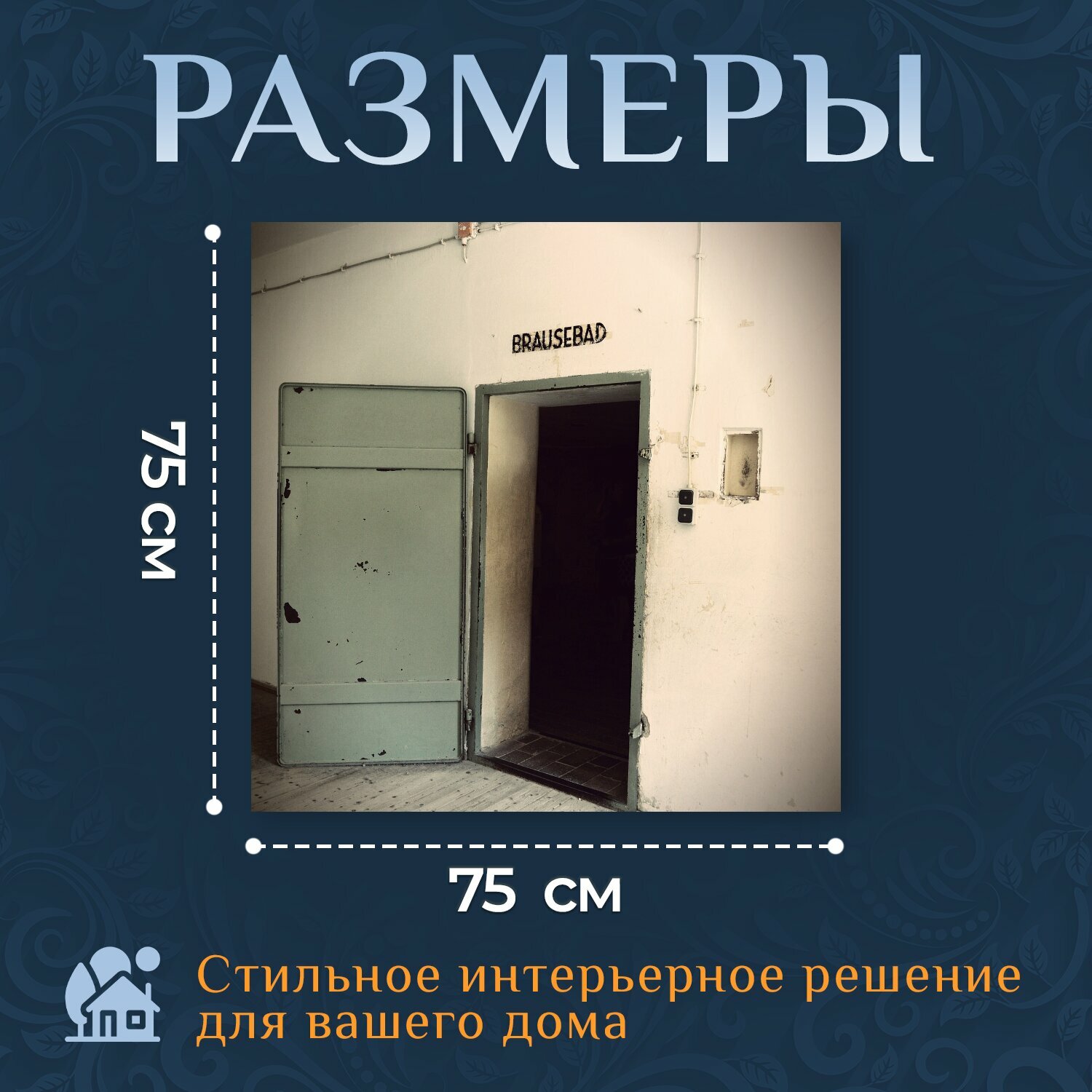 Картина на холсте "Концентрационный лагерь, дахау, душевая кабина" на подрамнике 75х75 см. для интерьера интересное:
