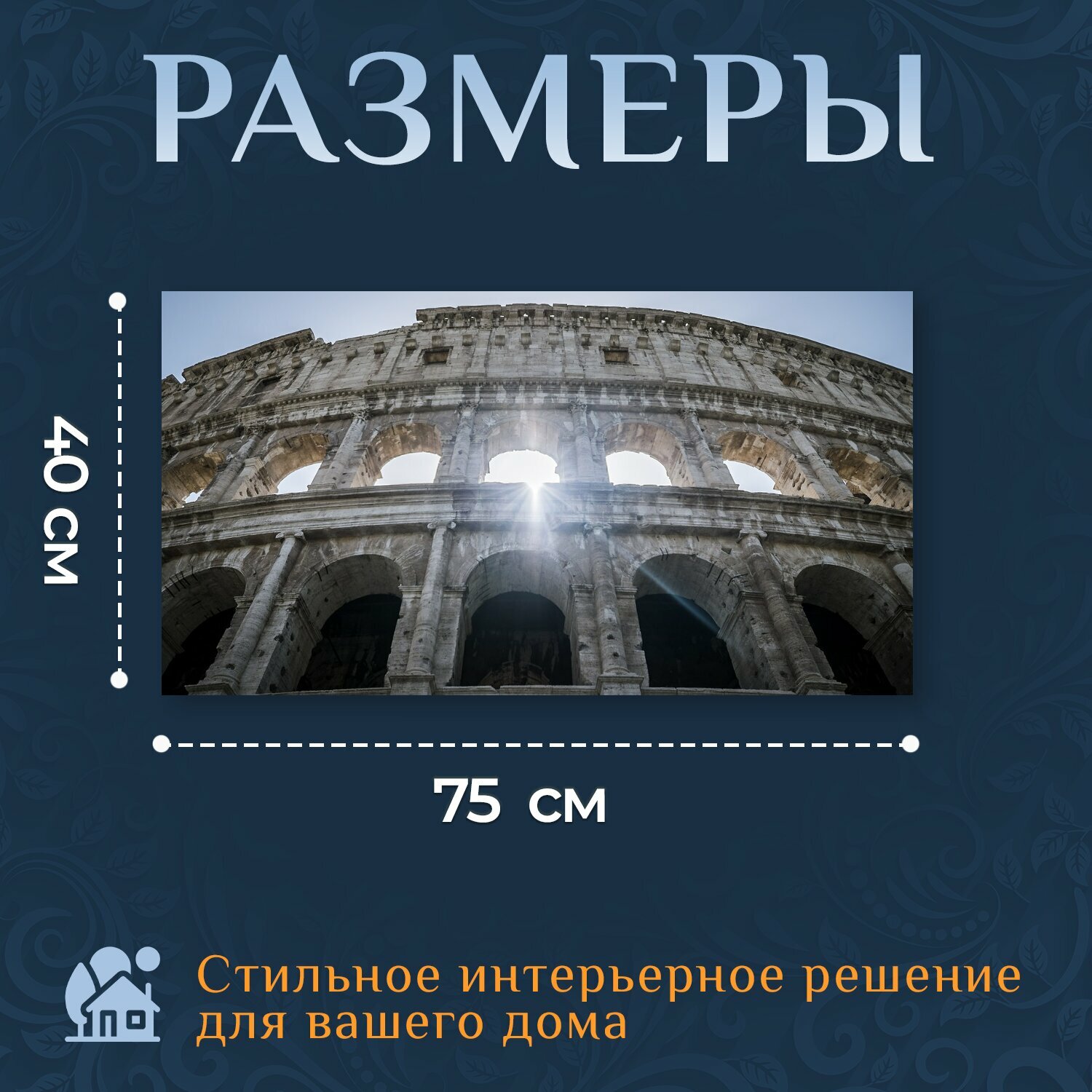 Картина на холсте "Рома, италия, колизей" на подрамнике 75х40 см. для интерьера интересное: