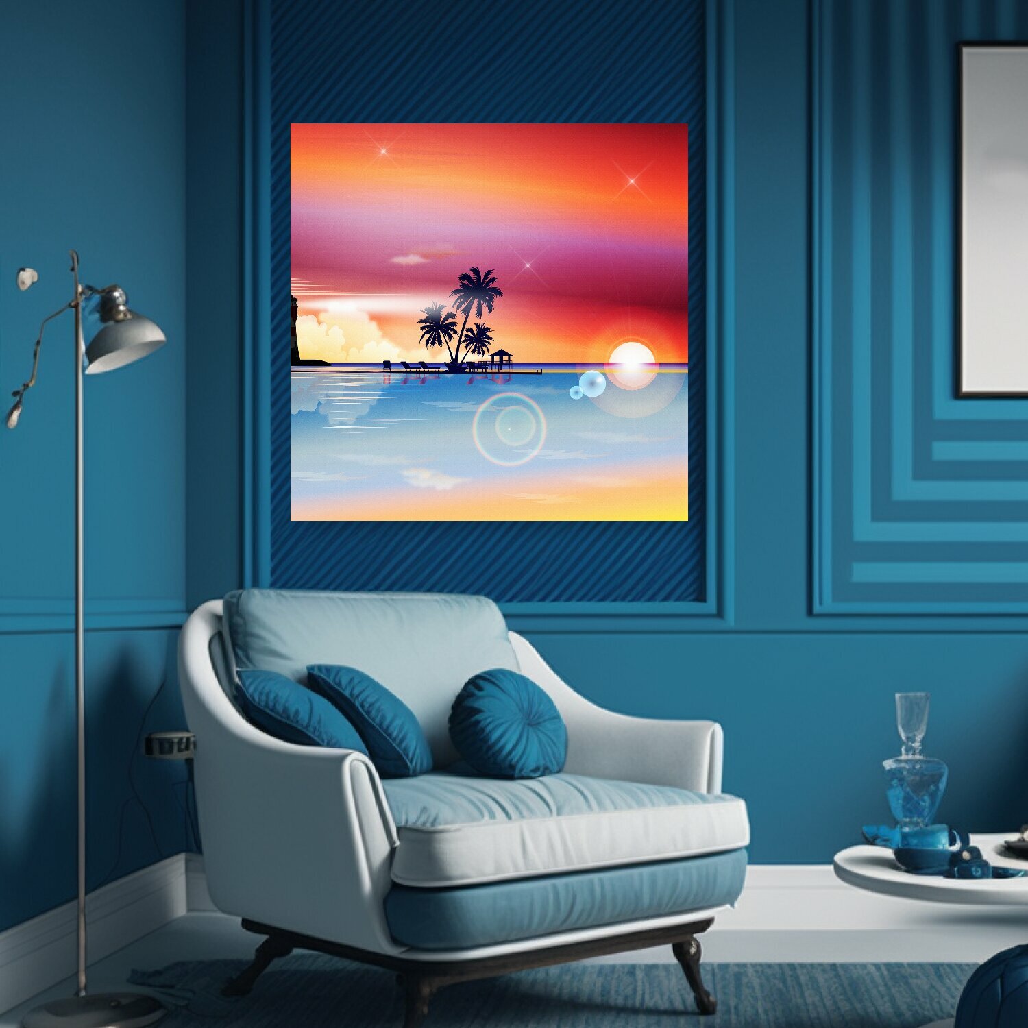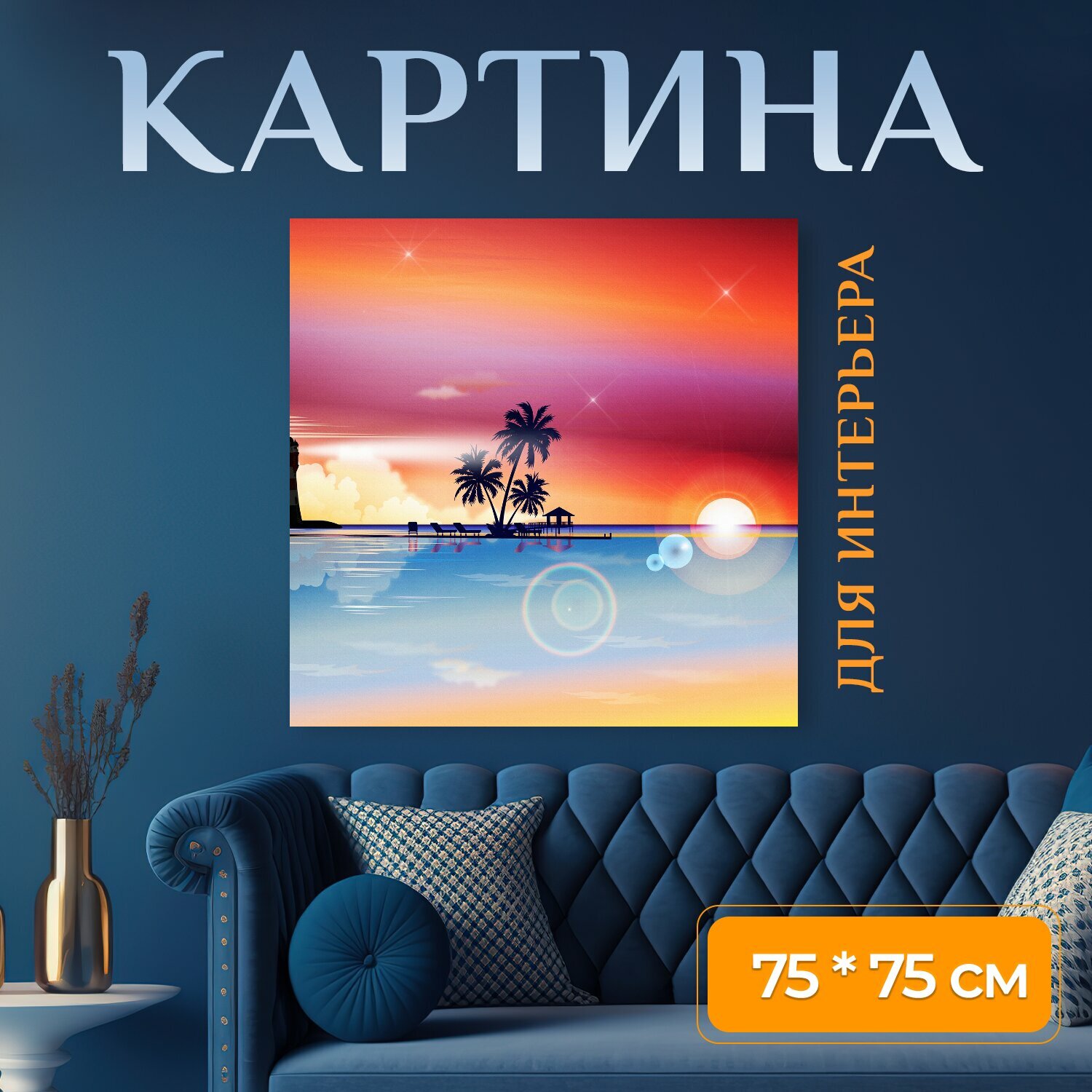 Картина на холсте "Пляж, море, пальмы" на подрамнике 75х75 см. для интерьера интересное: