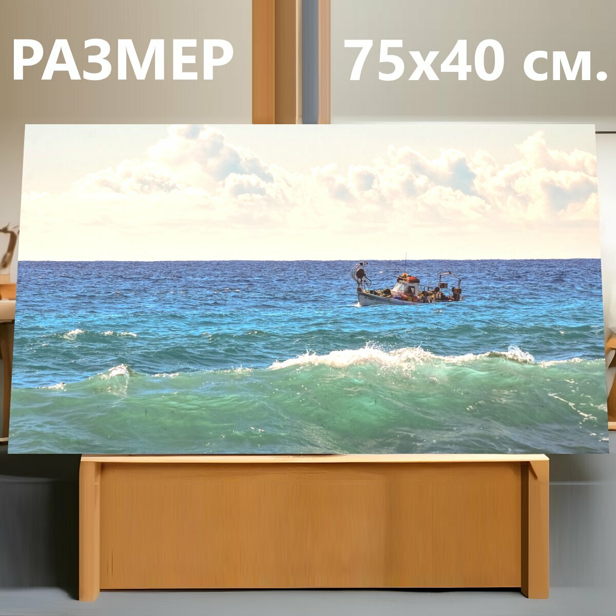 Картина на холсте "Море, волна, горизонт" на подрамнике 75х40 см. для интерьера интересное: