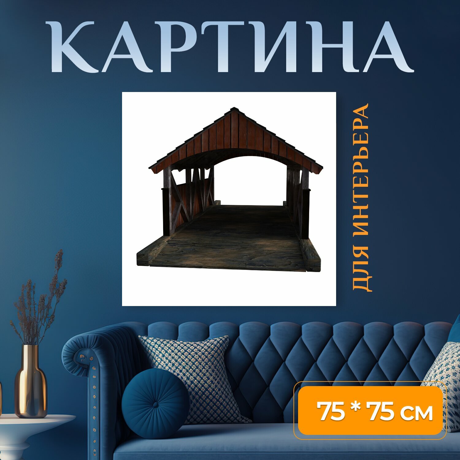 Купить Картина на холсте "Мост, покрытый, вода" на подрамнике 75х75 см. для интерьера