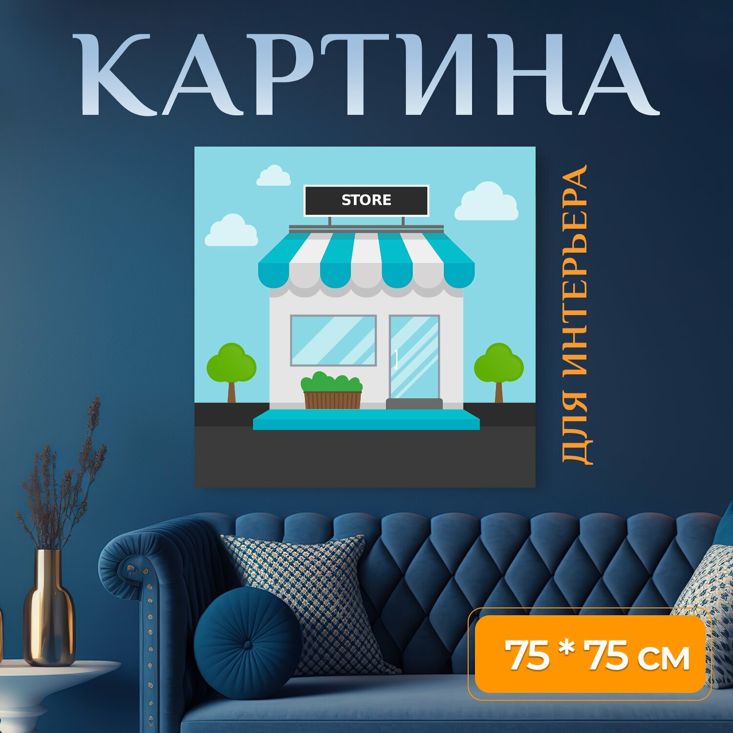 Купить Картина на холсте "Город, строительство, магазин" на подрамнике 75х75 см. для интерьера