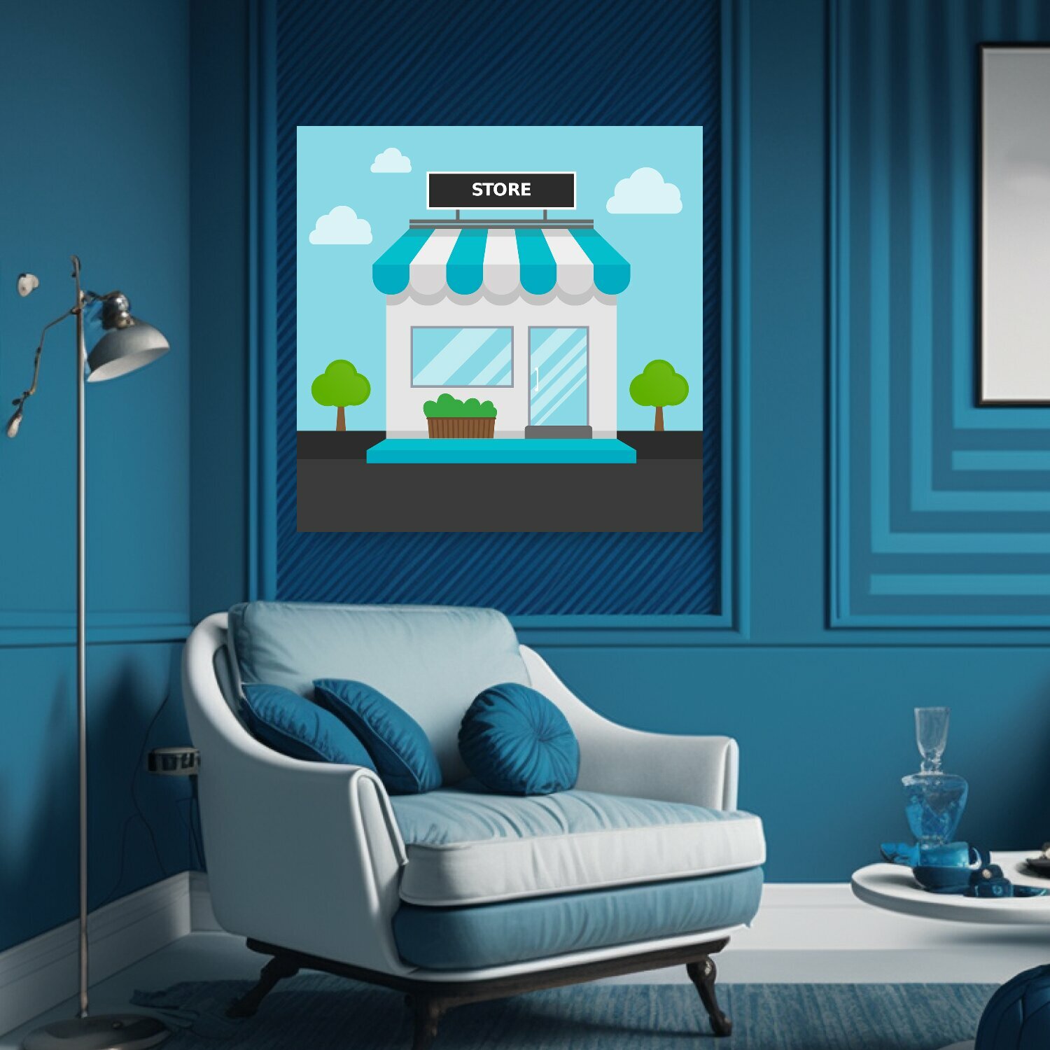 Картина на холсте "Город, строительство, магазин" на подрамнике 75х75 см. для интерьера интересное: