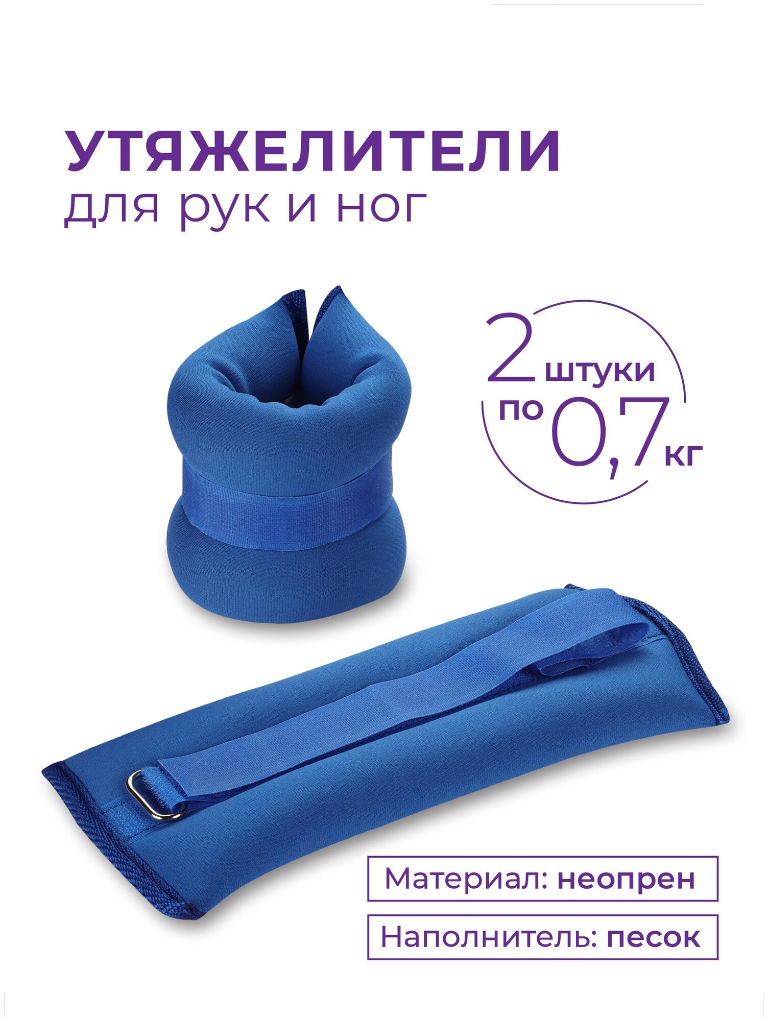 Утяжелители для ног и рук INDIGO неопреновые SM-261 0.7 кг сиреневый, пара