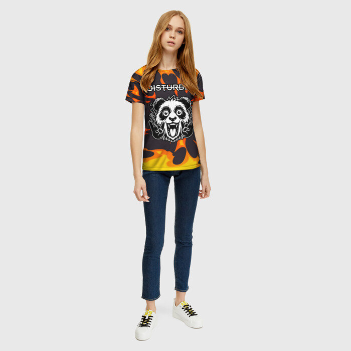 Купить Женская футболка 3D Disturbed рок панда и огонь, XS (42-44), белый