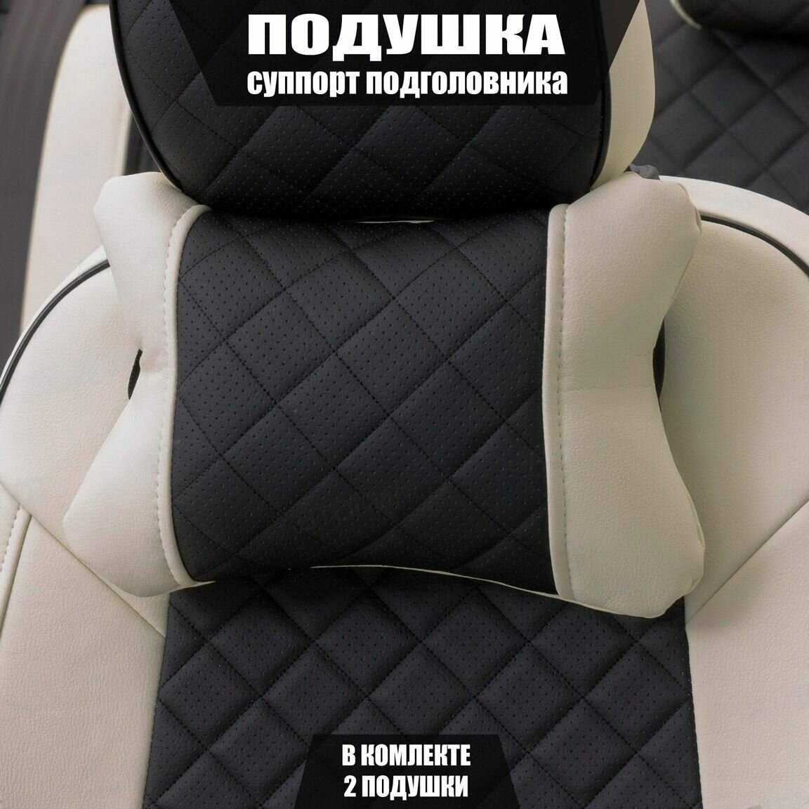Купить Подушки под шею (суппорт подголовника) для Хавал М6 (2019 - 2021) внедорожник 5 дверей / Haval M6, Ромб, Экокожа, 2 подушки, Белый и черный