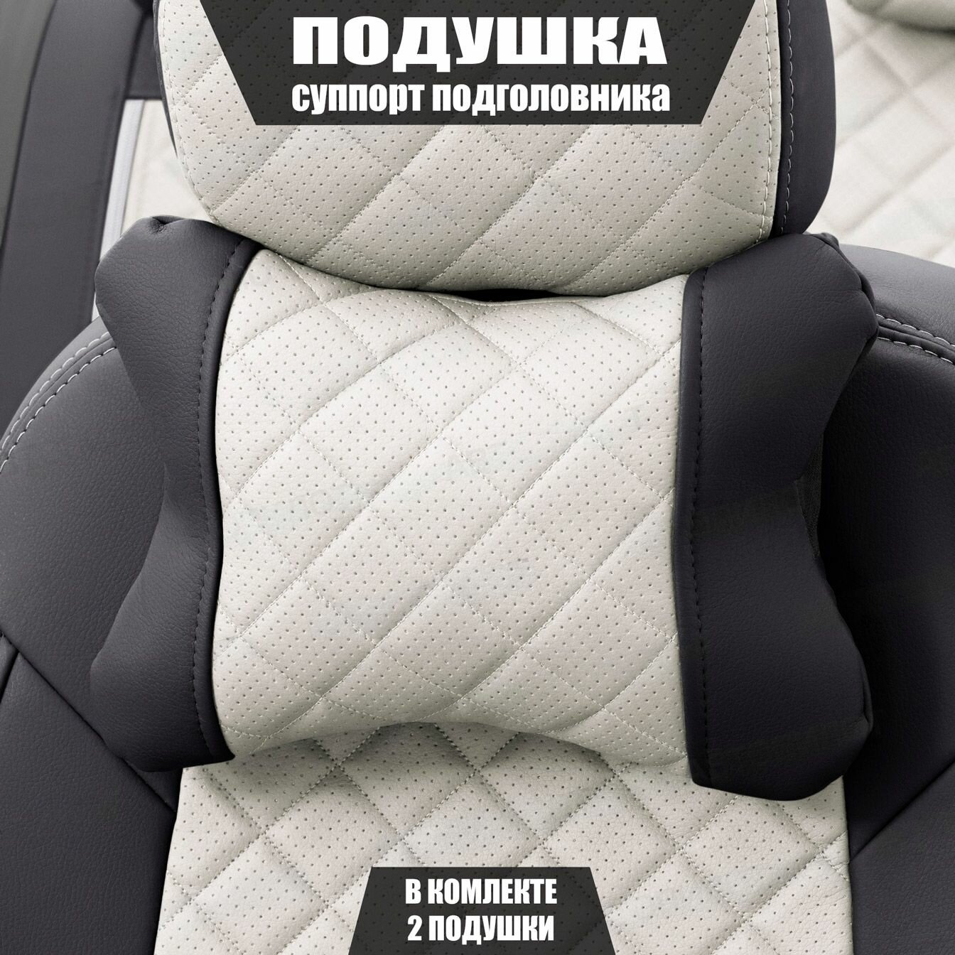 Подушки под шею (суппорт подголовника) для Хавал М6 (2019 - 2021) внедорожник 5 дверей / Haval M6, Ромб, Экокожа, 2 подушки, Серый и черный