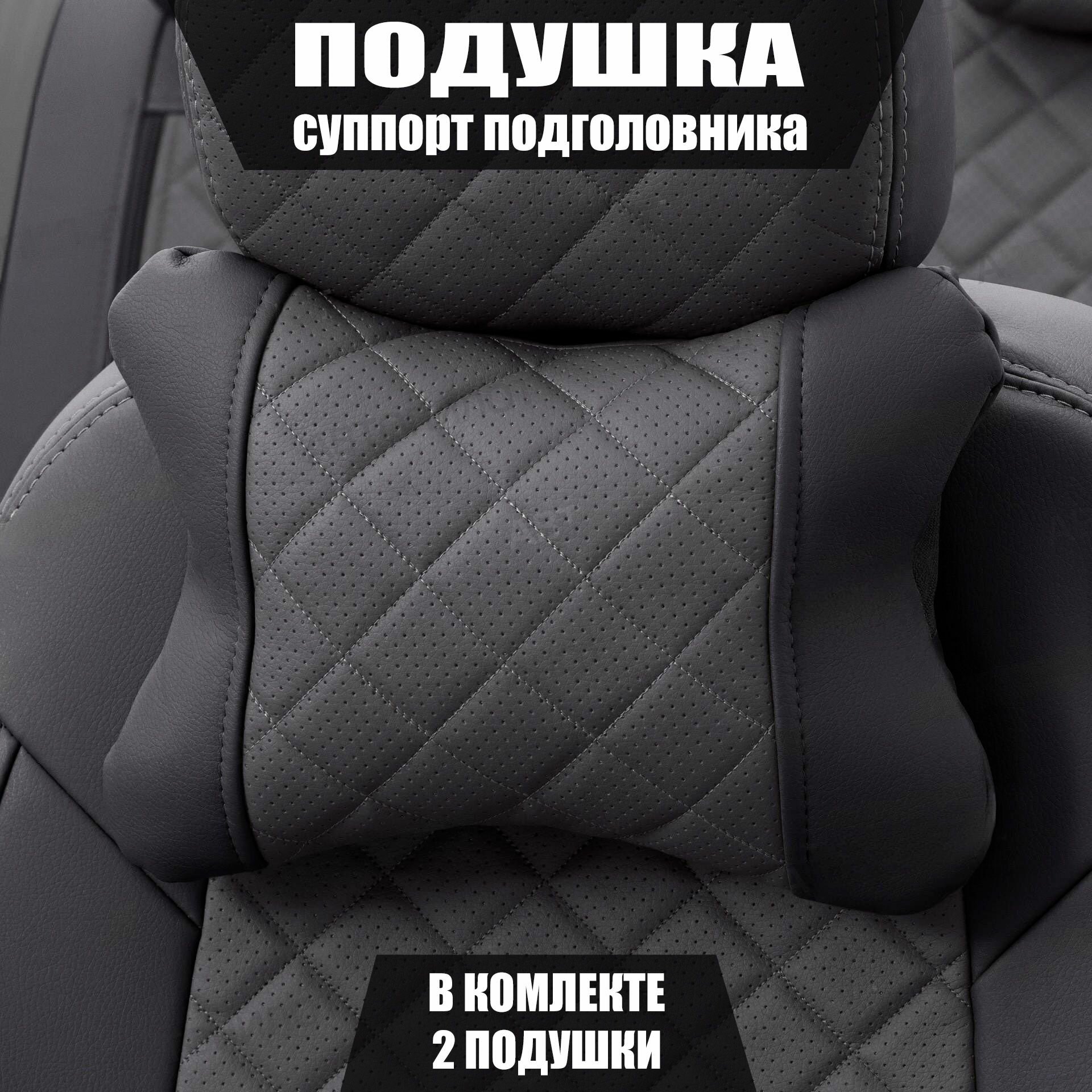 Подушки под шею (суппорт подголовника) для Хавал М6 (2019 - 2021) внедорожник 5 дверей / Haval M6, Ромб, Экокожа, 2 подушки, Серый и черный
