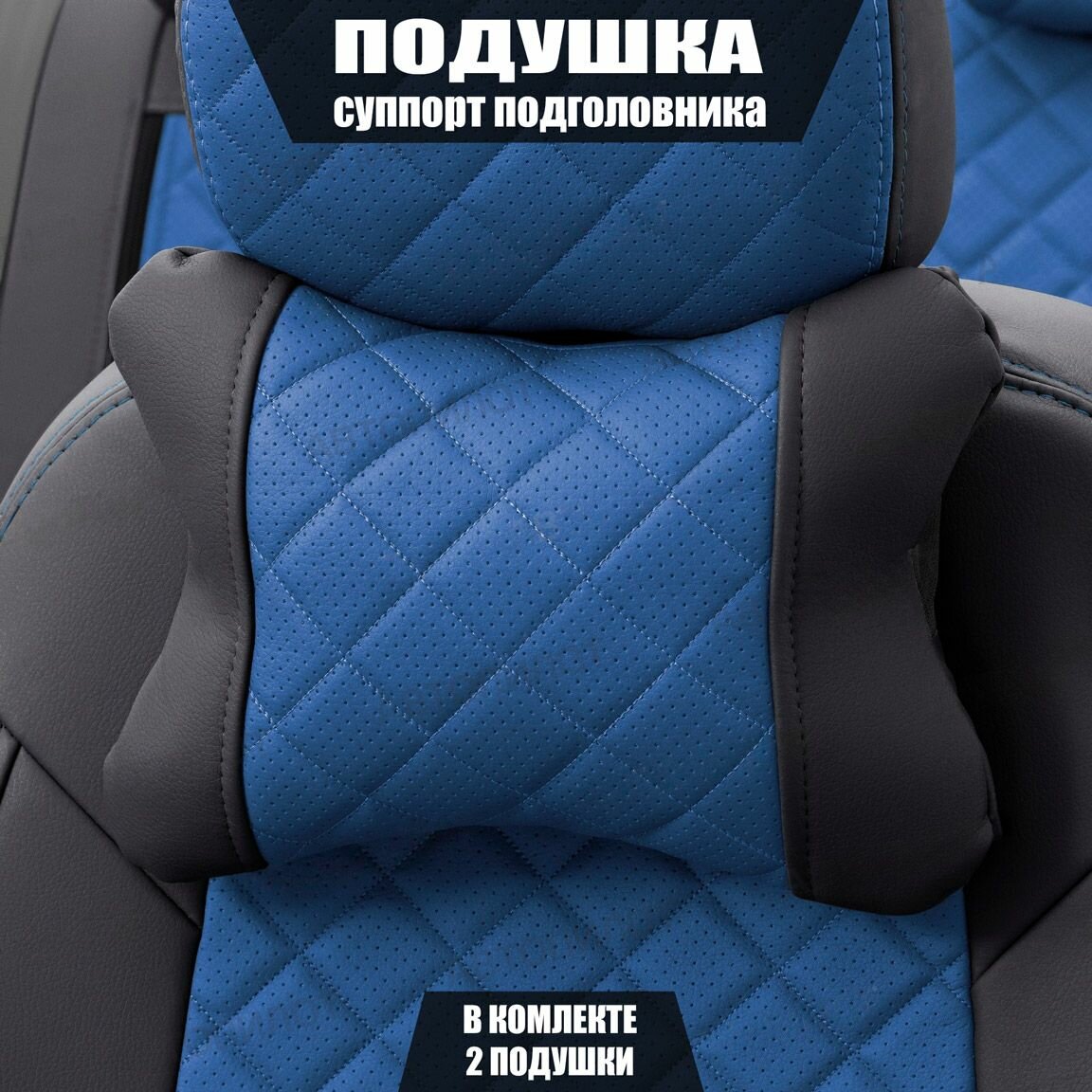 Купить Подушки под шею (суппорт подголовника) для Хавал М6 (2019 - 2021) внедорожник 5 дверей / Haval M6, Ромб, Экокожа, 2 подушки, Черный и синий