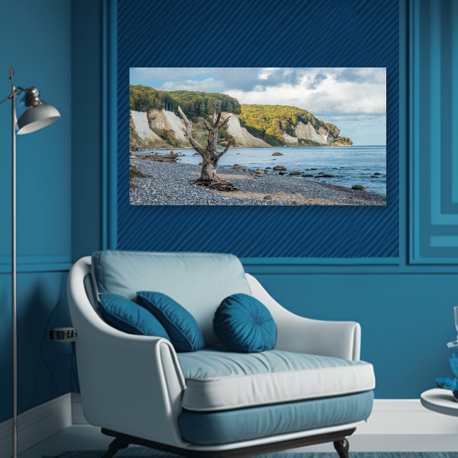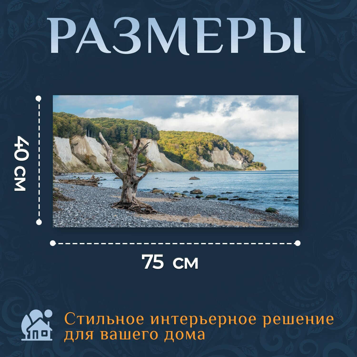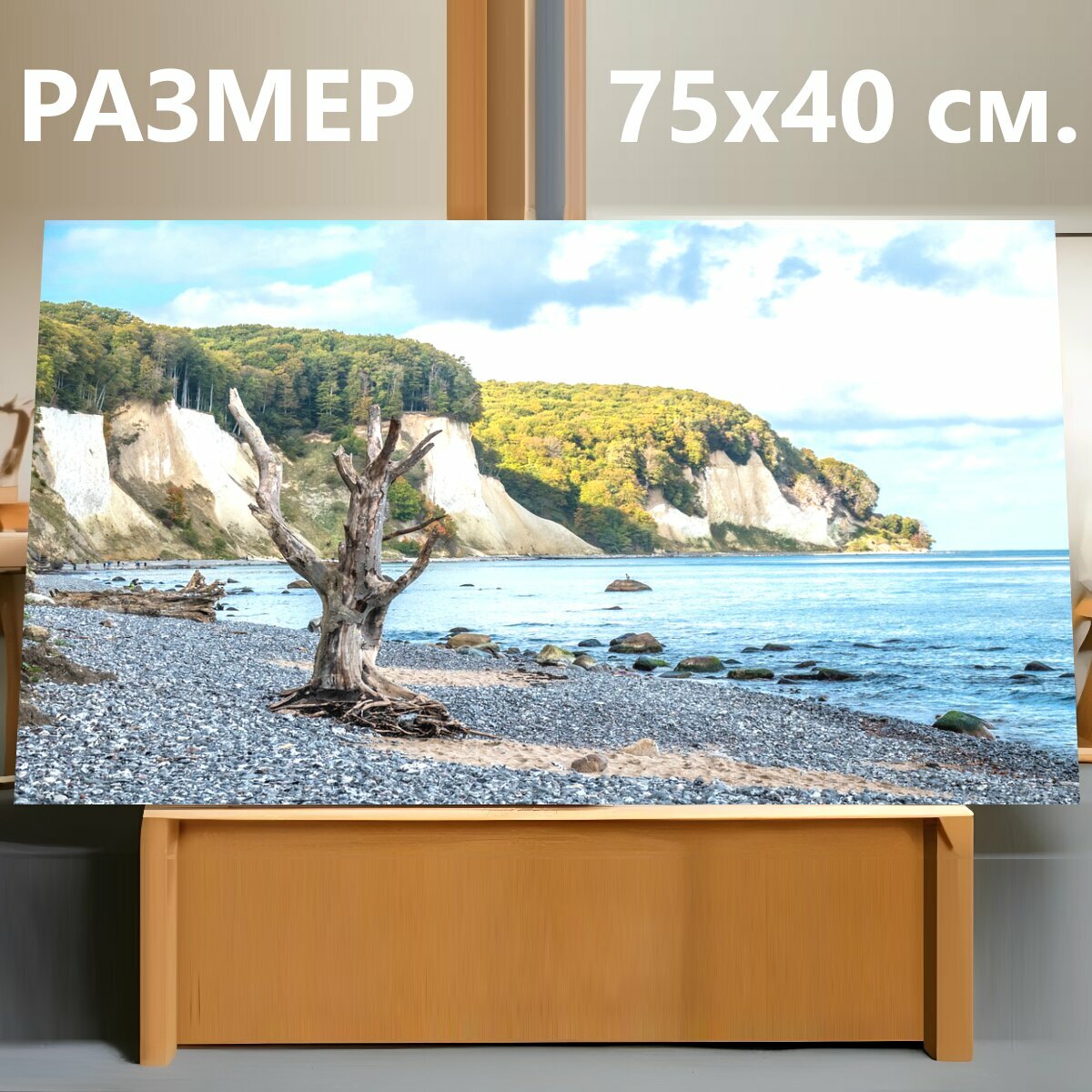 Купить Картина на холсте "Деревья, пляж, горные породы" на подрамнике 75х40 см. для интерьера